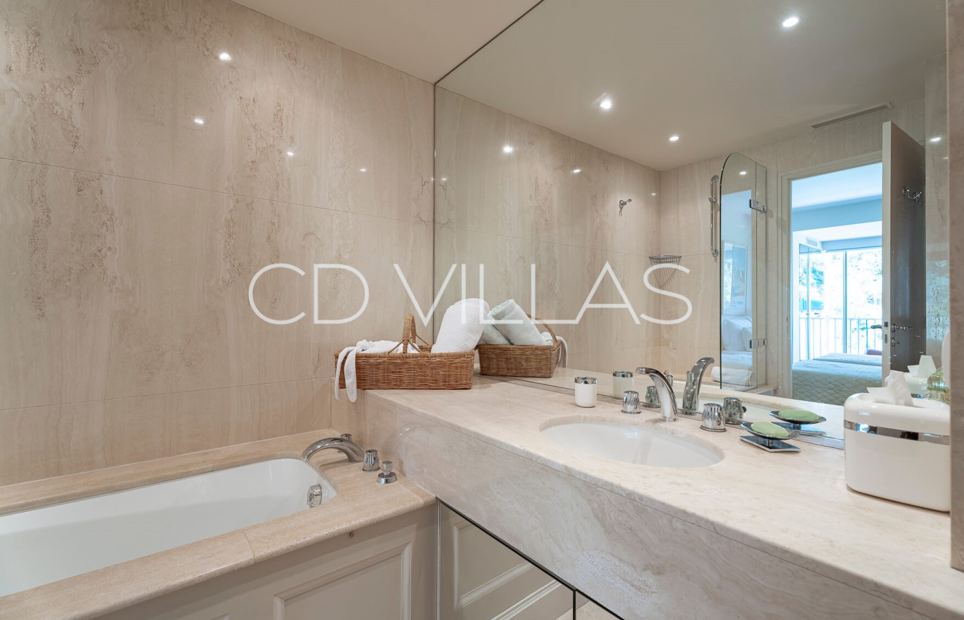 The Master bedroom and it's en suite bathroom with terrace and sea views is located in the left wing, as wella as a third bedroom with double bed and bathroom. A forth single bedroom is avaialble to guests.