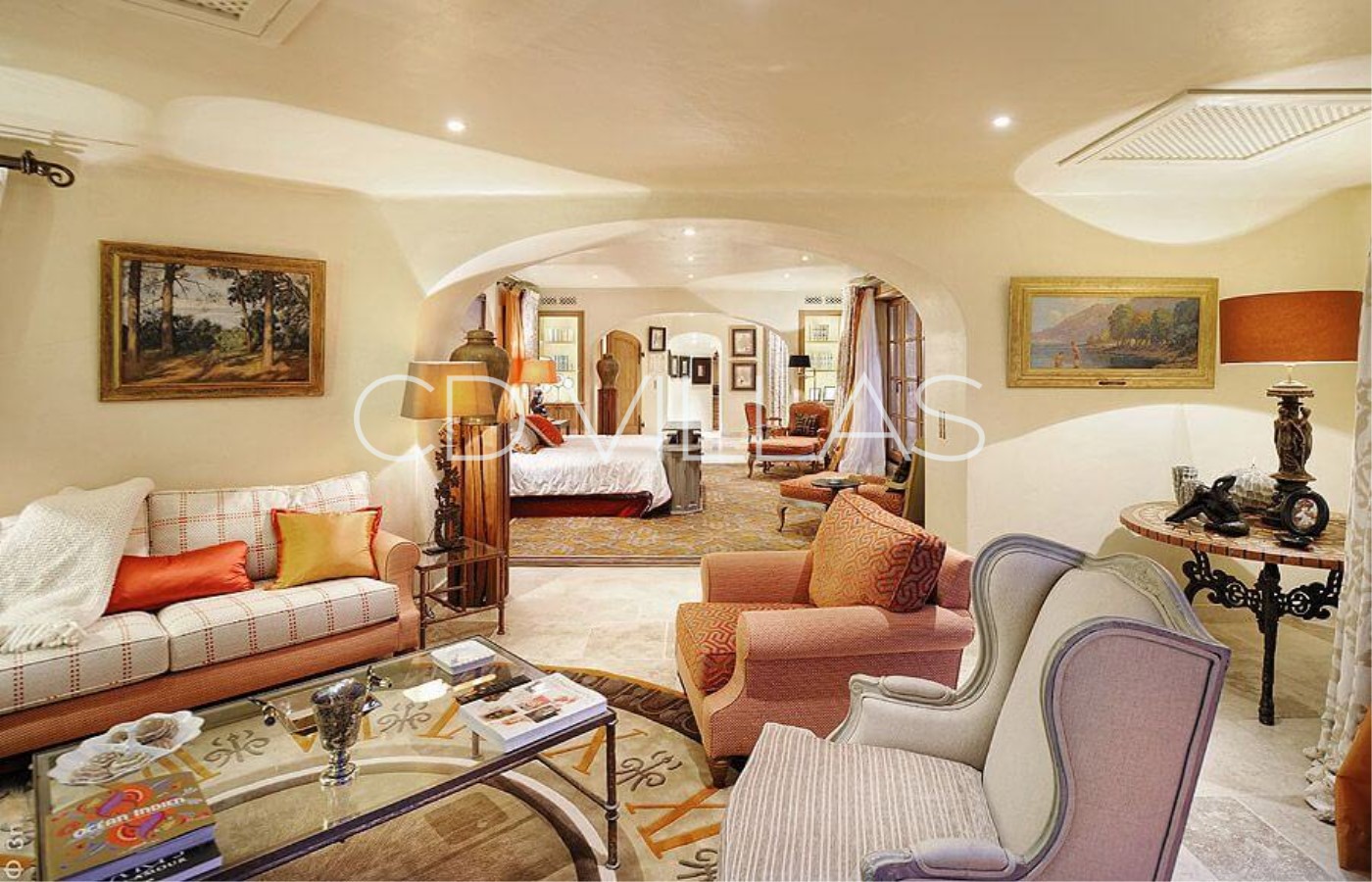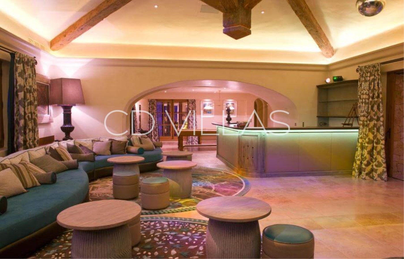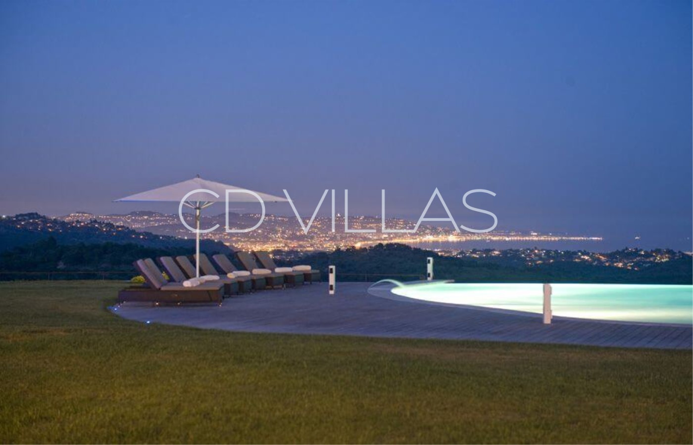 When you enter the house, you are enthralled by the seaview with rolling woods surrounding the property. The large double living room is the heart of this beautiful house with, on the left handside, the dining room with sea and pool view, the office fit for a king or a businessman, and the large kitchen fitted with the latest Gaggenau appliances, marble countertops and sink as well as three large fridge freezers. On the right handside of the living room, you have a small guest office and four bedrooms all with ensuite bathrooms ( shower enclosure, bathtub with TV, bidet and WC). All bedrooms have kingsize beds or large twins, dressing rooms, either garden or seaview with direct acces to the garden, AC and TV screen with international satellite channels. Following the bedrooms, there is a large nightclub/games room perfect for parties or family celebrations. The first floor is the master bedroom with a large private lounge, dressing room, full bathroom and a balcony with panoramic seaview. There is AC throughout the house, indoor and outdoor music system, high speed internet, DVD, Ipod Outside is like an extension of the house with large dining areas, comfortable summer lounges on the covered terraces, large decking with sunlounges around the infinity pool overlooking the sea. Underneath the pool, you will find the spa with state of the art gym equipment, jacuzzi, hammam and sauna. There is a silent security system with guards on the grounds at night and a groundsman always onsite. There is a helipad on the grounds for easy access from the airport.