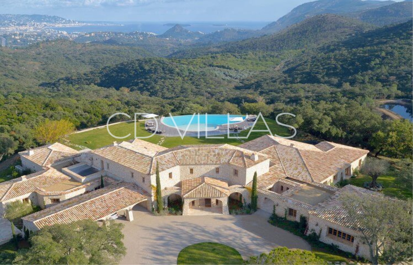 Once passed the secured gate, you enter a 30 hectares private domain where The King's view sits at the top of the hill with stunning views over the Bay of Cannes.