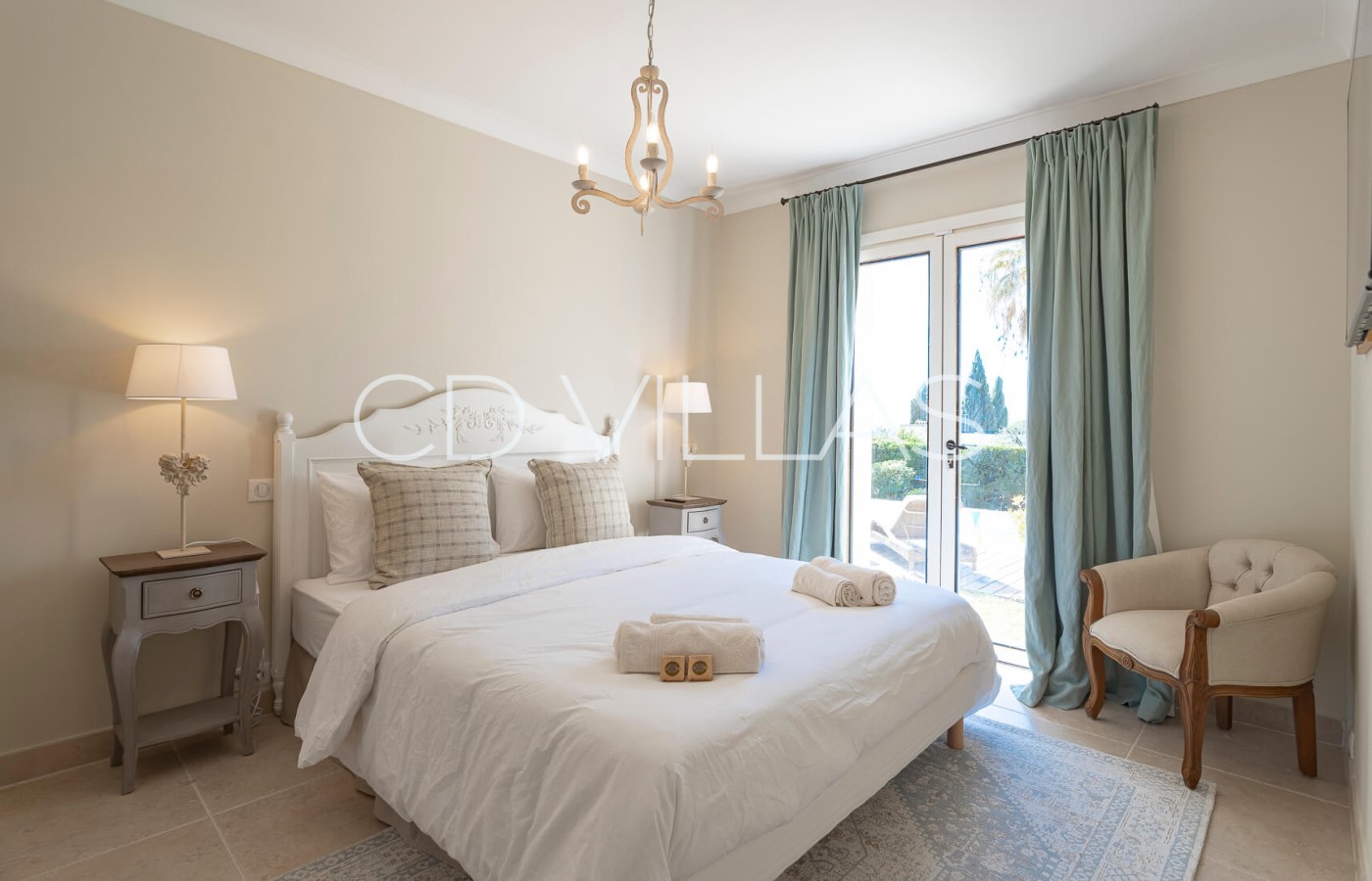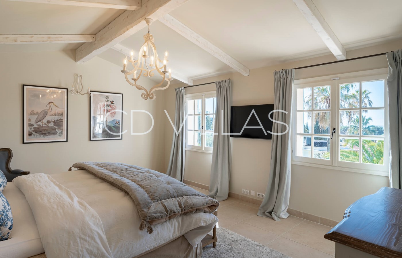 Bedroom 1 - Master bedroom with large double bed, TV, and full en suite bathroom, walk in dressing. Sea views.