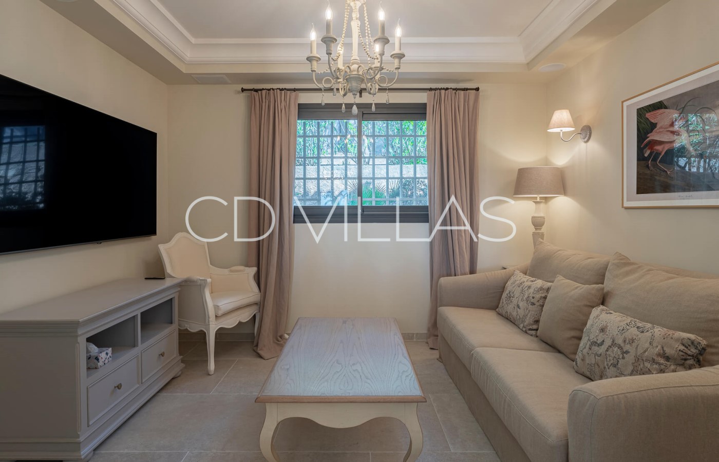 Livingroom - Livingroom with comfortable sofas and large window doors opening to the pool terrace, large TV.
