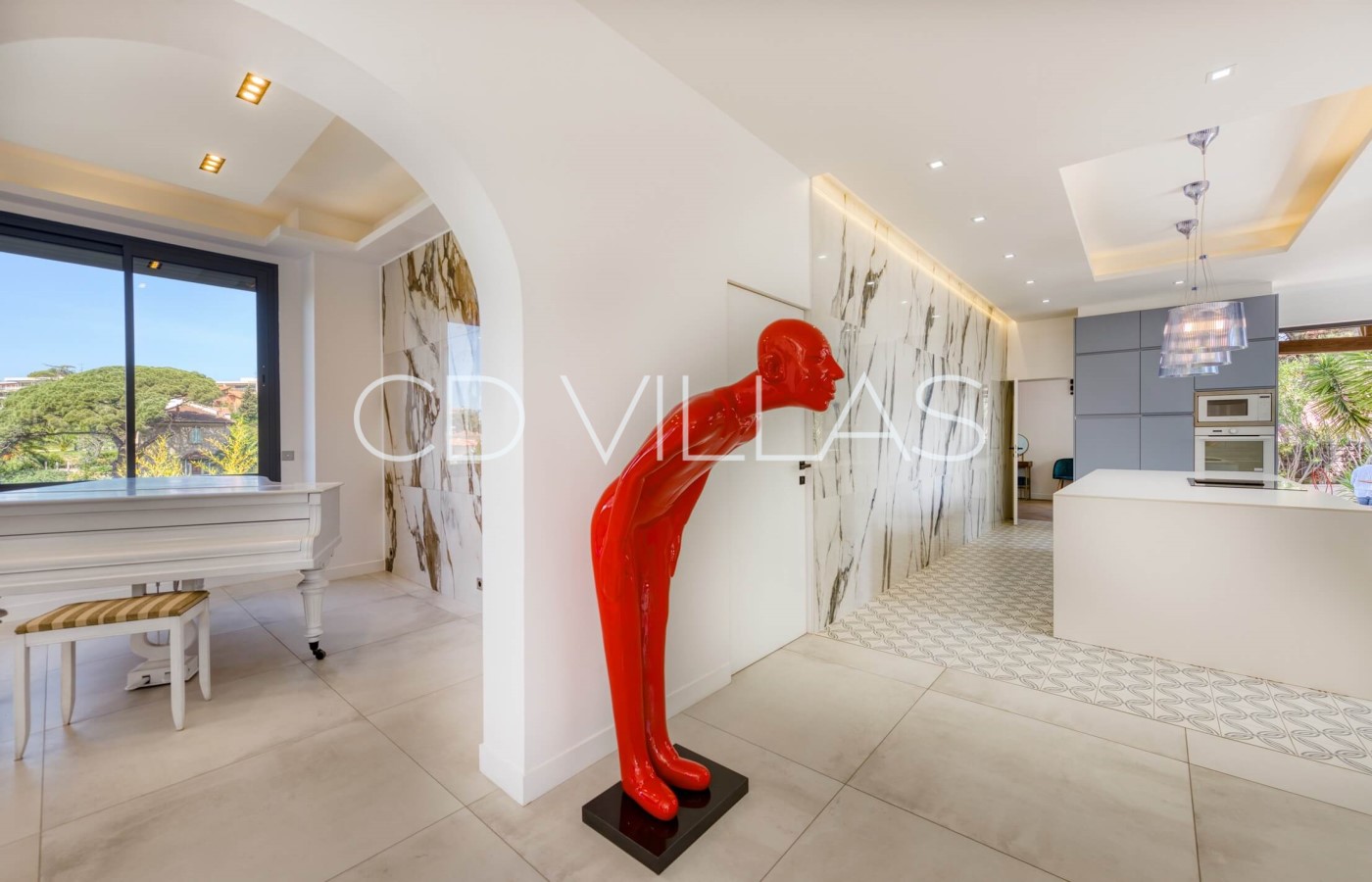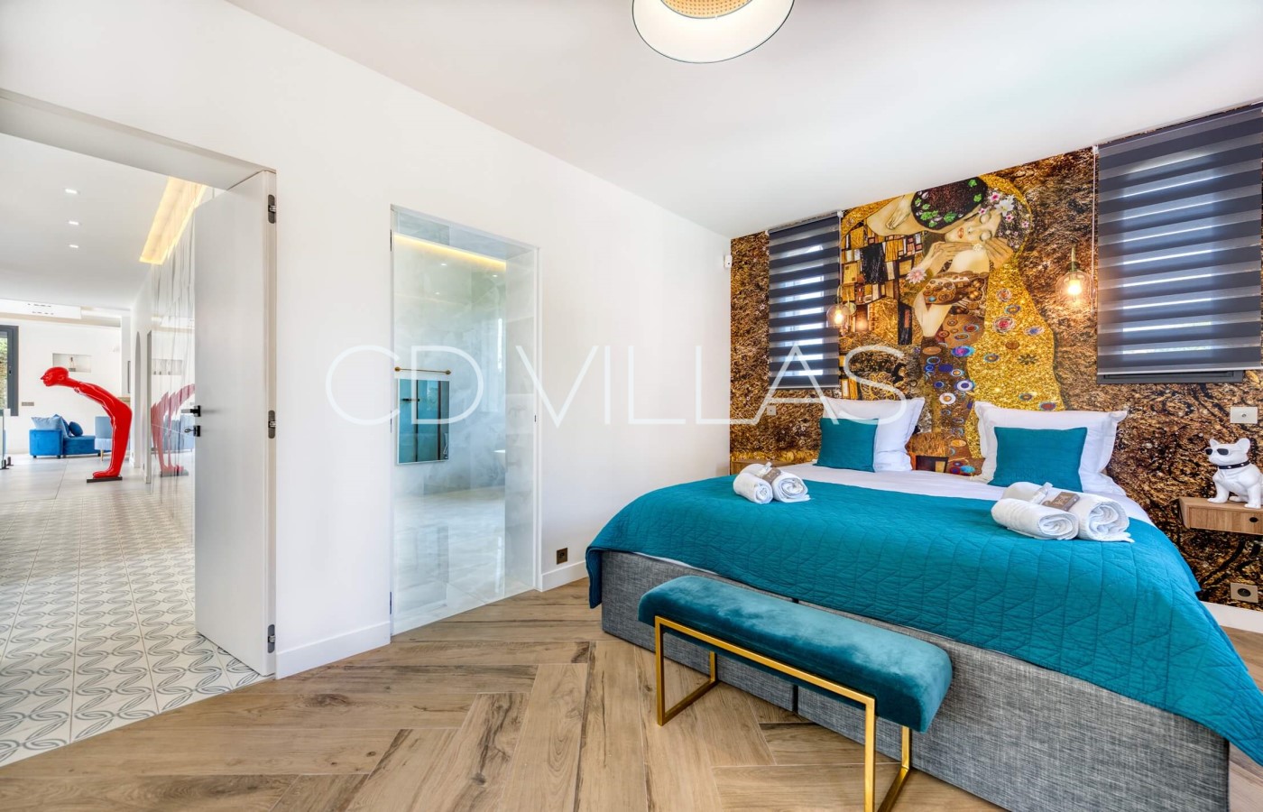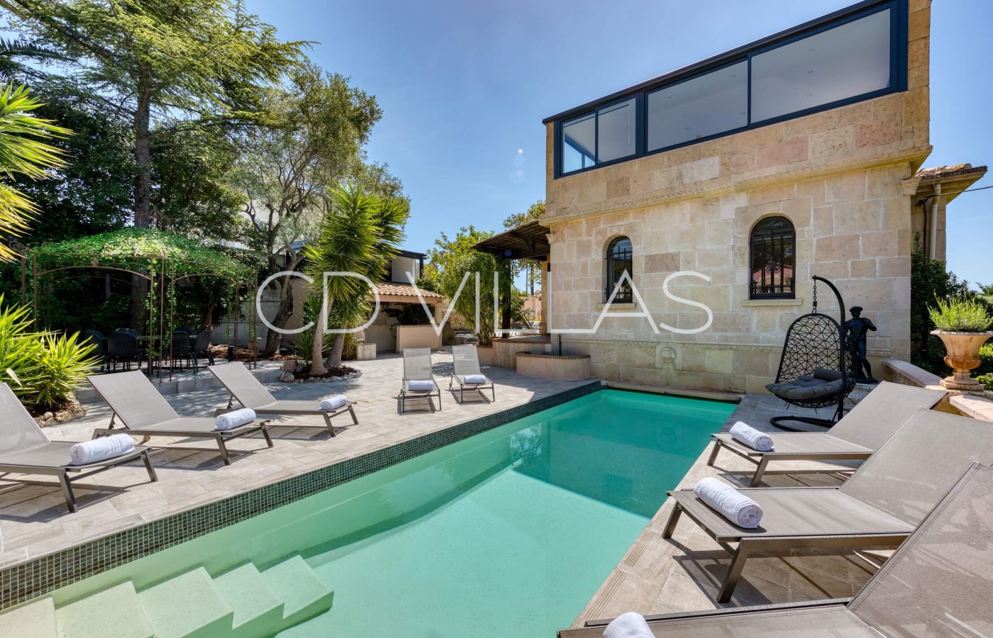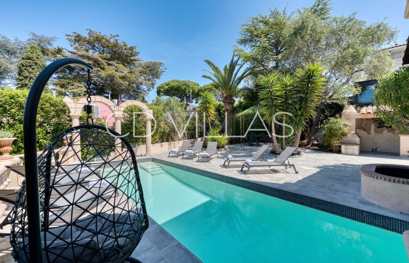 Located within a 10-minute walk of the lively town centre of Cannes, this unique luxury property consists of a main house with 5 double bedrooms, all ensuite, open living dining and high end kichen. The stylish interiors have been newly renovated to an exceptionally high standard and are air-conditioned throughout.