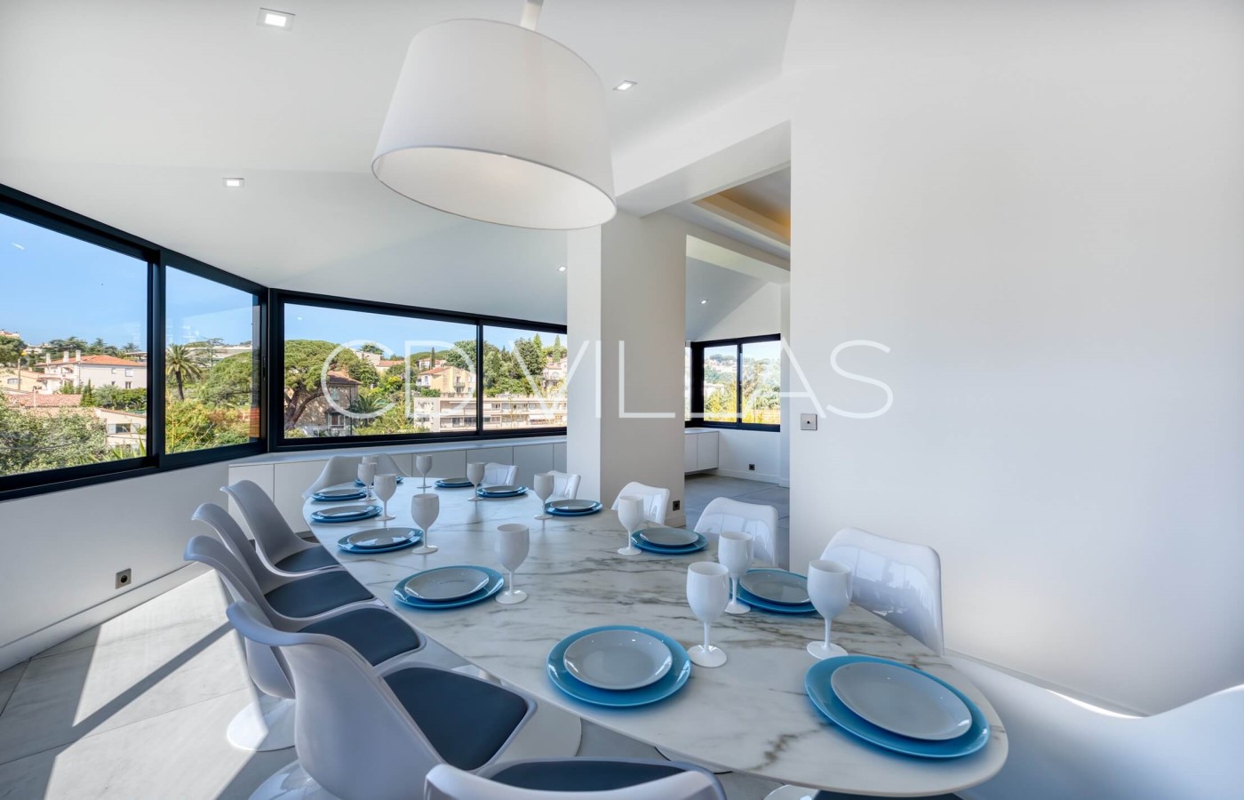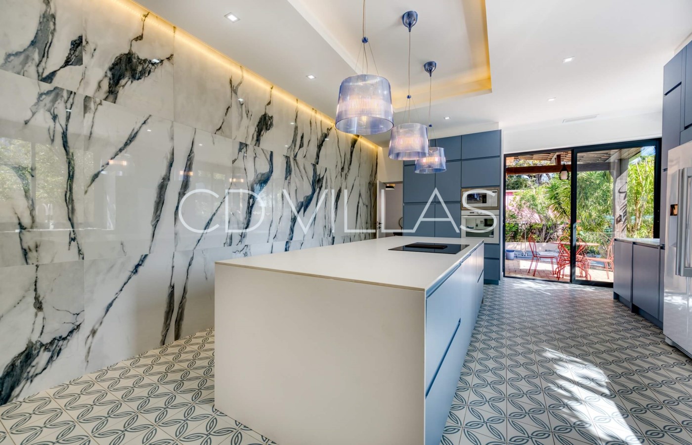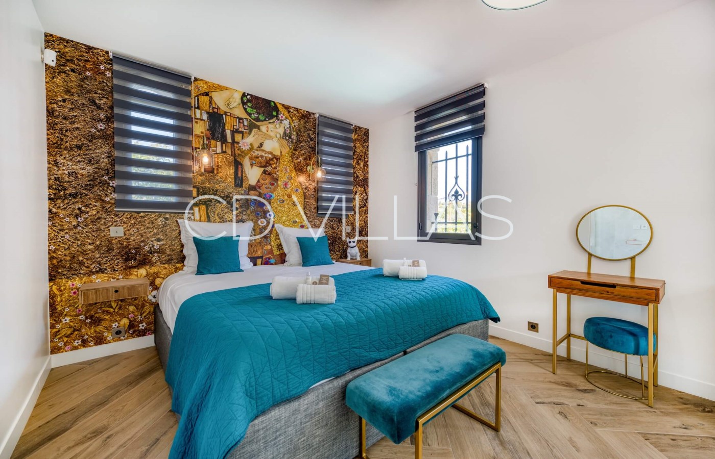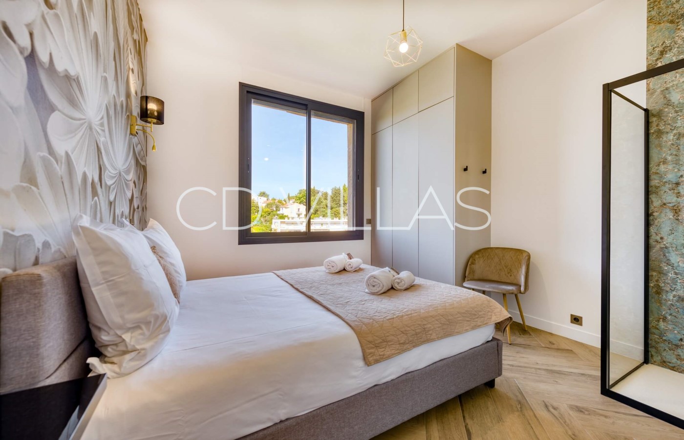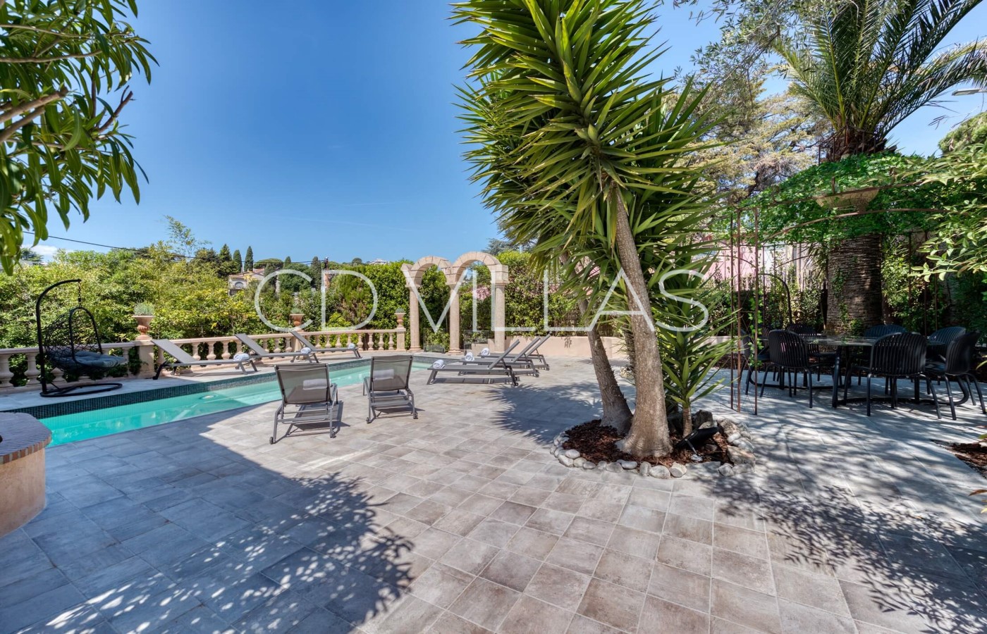 Located within a 10-minute walk of the lively town centre of Cannes, this unique luxury property consists of a main house with 5 double bedrooms, all ensuite, open living dining and high end kichen. The stylish interiors have been newly renovated to an exceptionally high standard and are air-conditioned throughout.