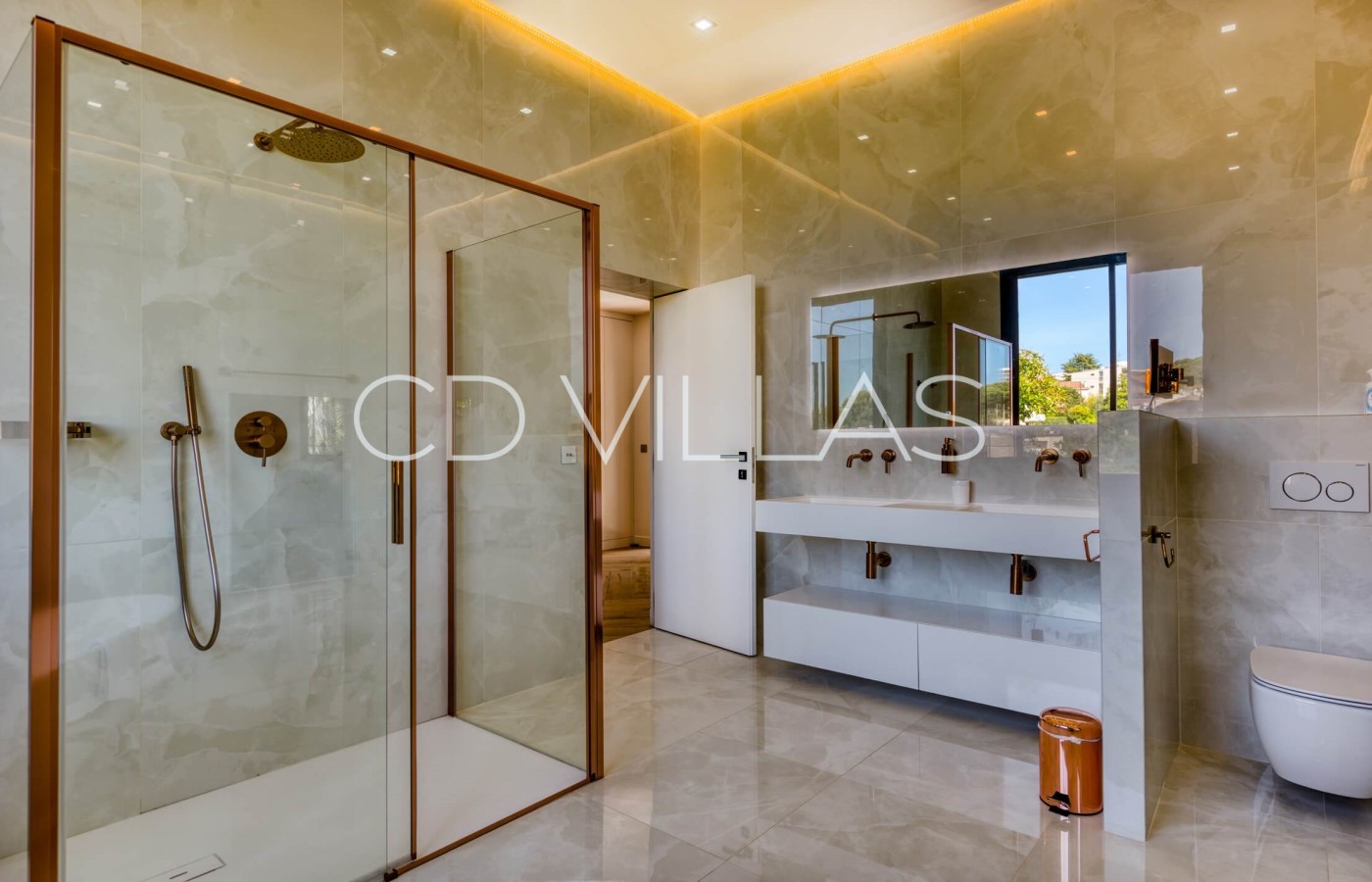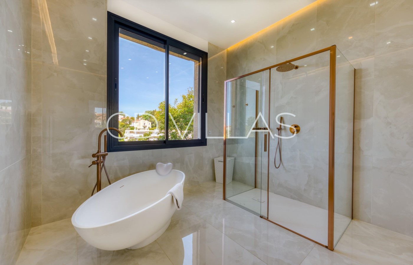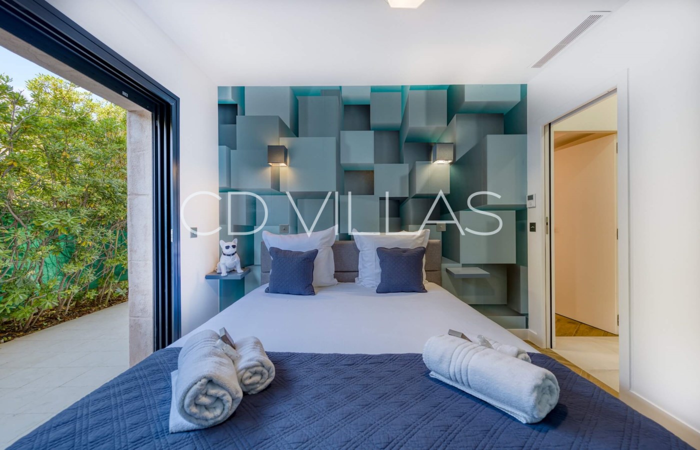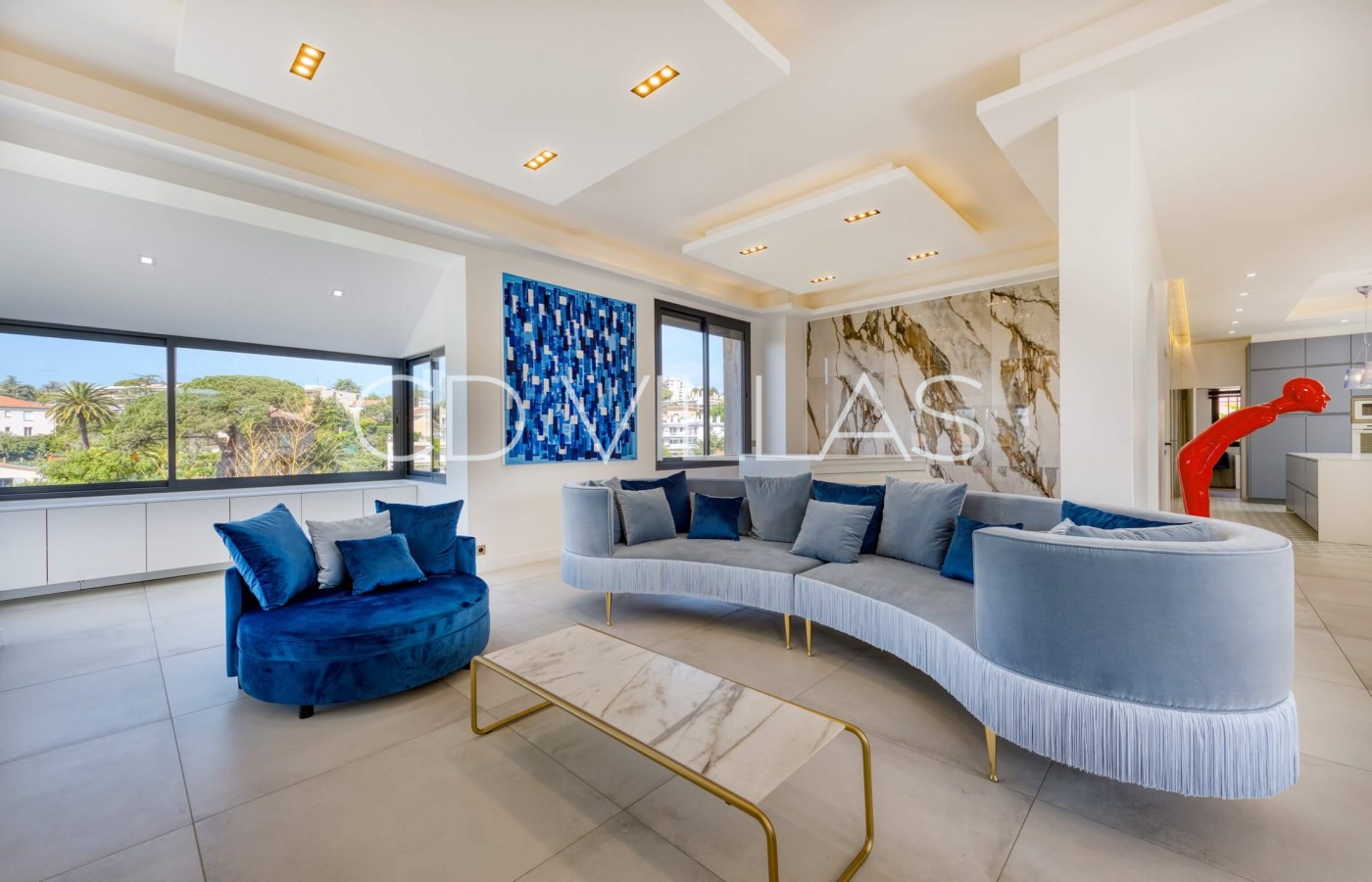 Located within a 10-minute walk of the lively town centre of Cannes, this unique luxury property consists of a main house with 5 double bedrooms, all ensuite, open living dining and high end kichen. The stylish interiors have been newly renovated to an exceptionally high standard and are air-conditioned throughout.