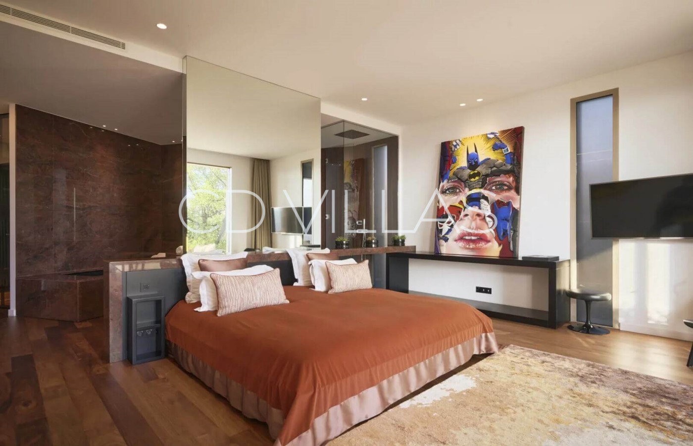 Bedroom 4 - Double bedroom with TV, private terrace, ensuite bathroom with bathtub, shower, double vanity and toilet.