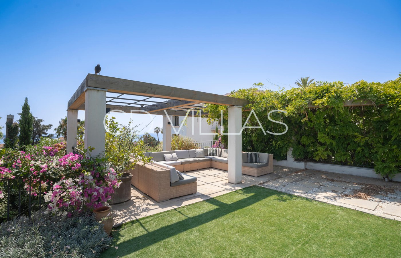 The exteriors ooze the essence of the French Riviera. There are several terraces, an inviting outside living room and beautiful pool. Secure off street parking is available for several cars.