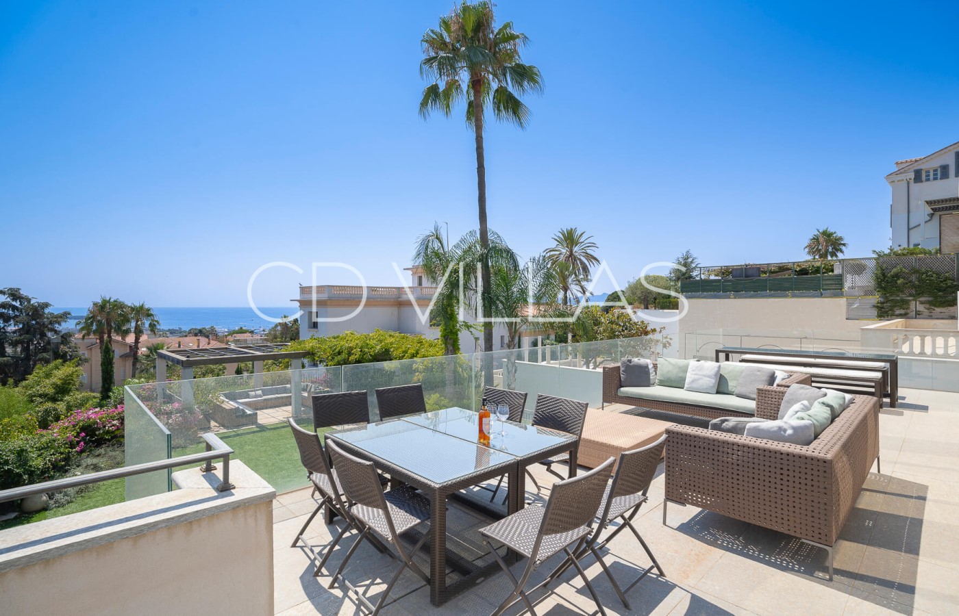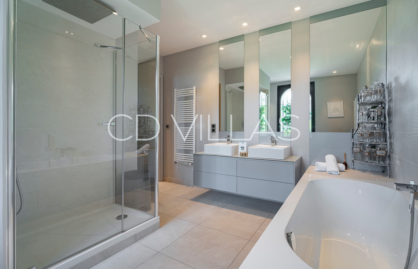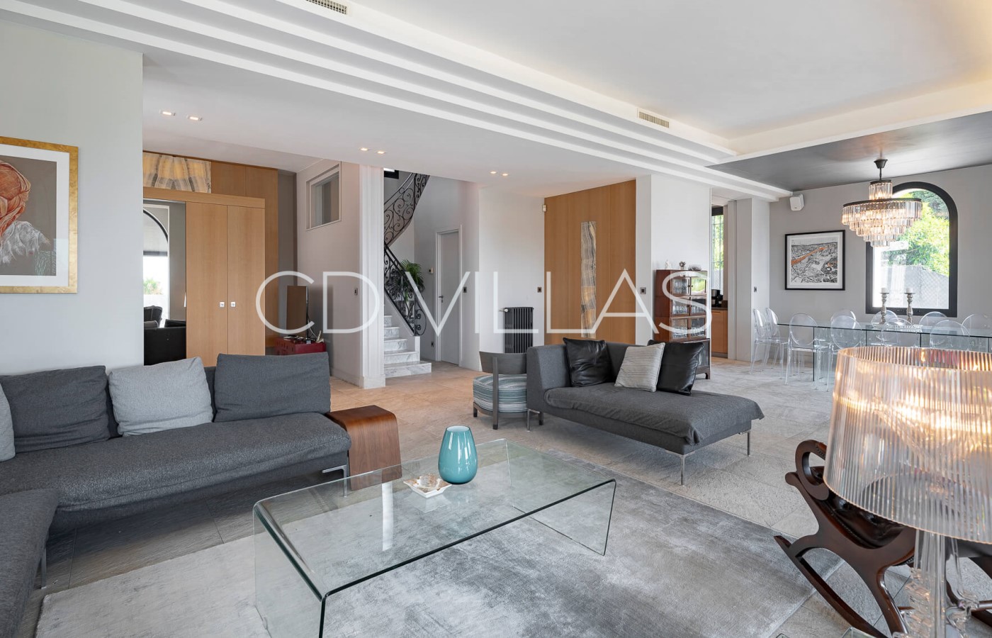 A fabulous designer villa with 6 en suite bedrooms, combining elegance, sophistication and comfort. The villa is set just above Cannes in a prestigous residential neighborhood with one of kind views over Cannes and out to sea.