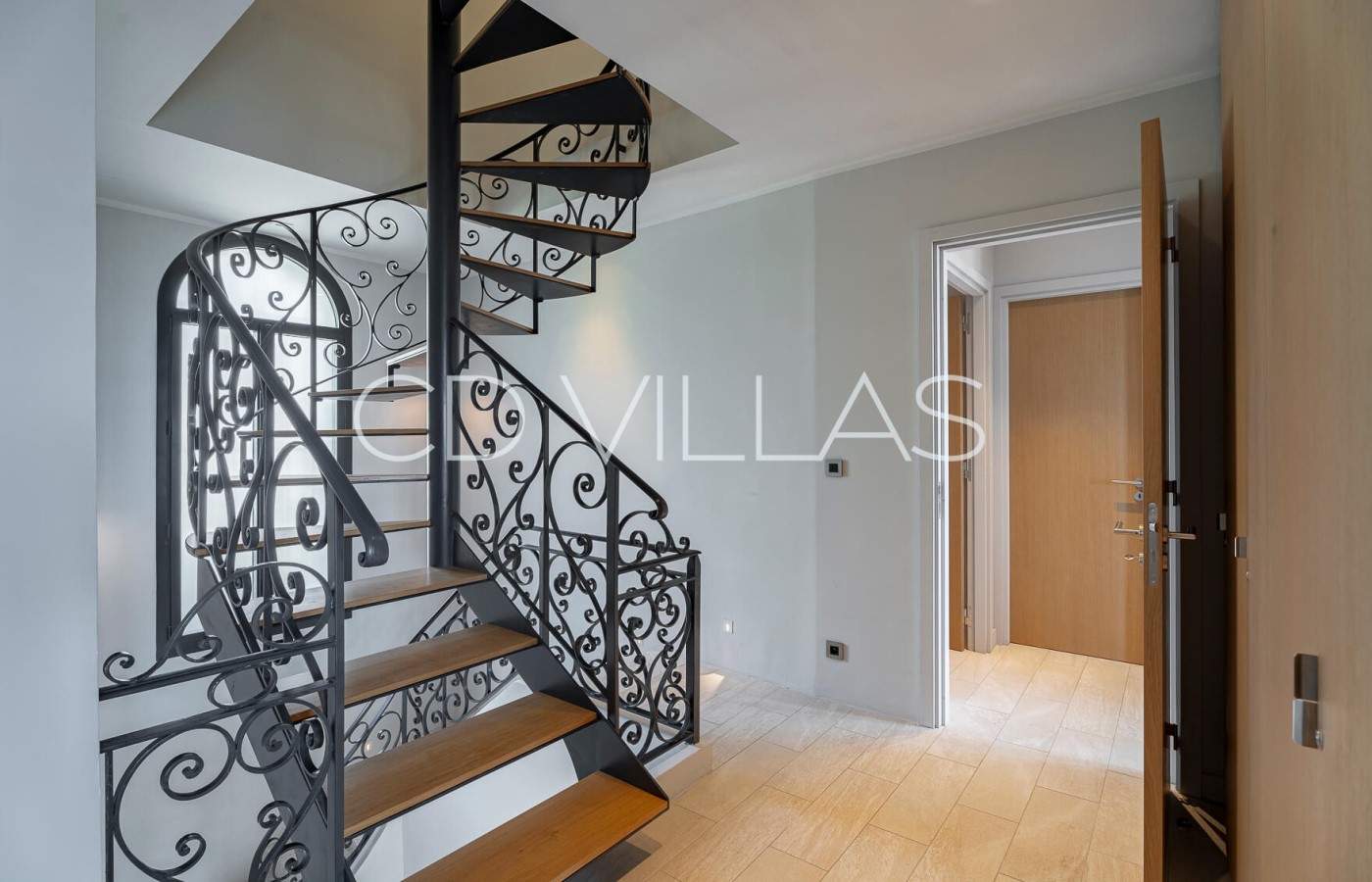 On the lower floor there are two en suite bedrooms, all furnished to high standard. From the ground floor steps lead up to additional en suite bedrooms and the Master bedroom in the Mezzanine, with magnificent views over Cannes and sea.