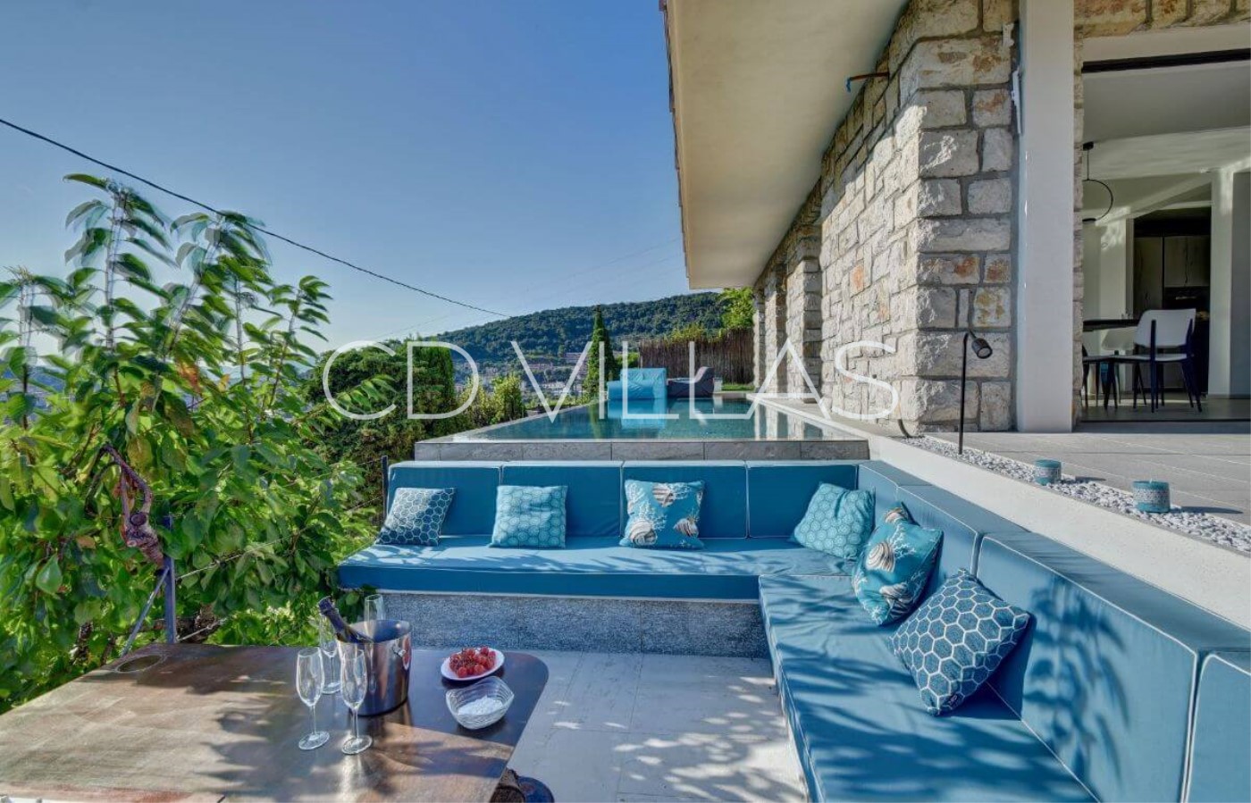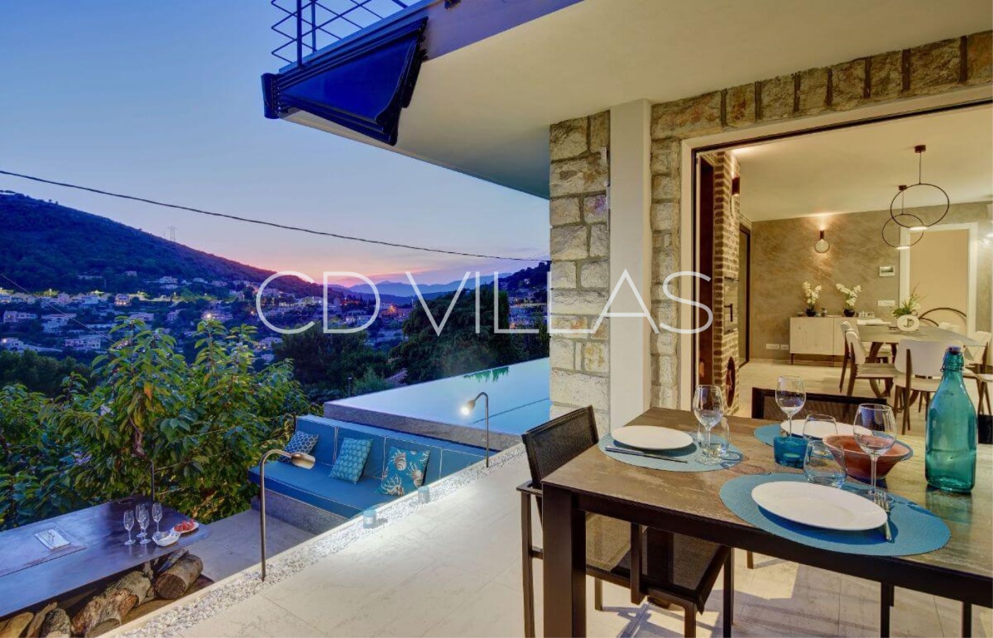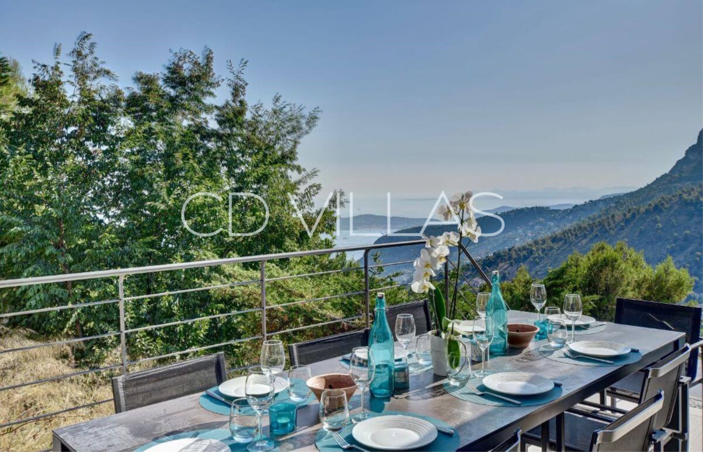 Located within a short walk to the village centre of La Turbie, this contemporary villa offers 5 bedrooms, one of which has independent access, spa section with hammam and sauna, heated infinity pool and outdoor jacuzzi with stunning sea views.