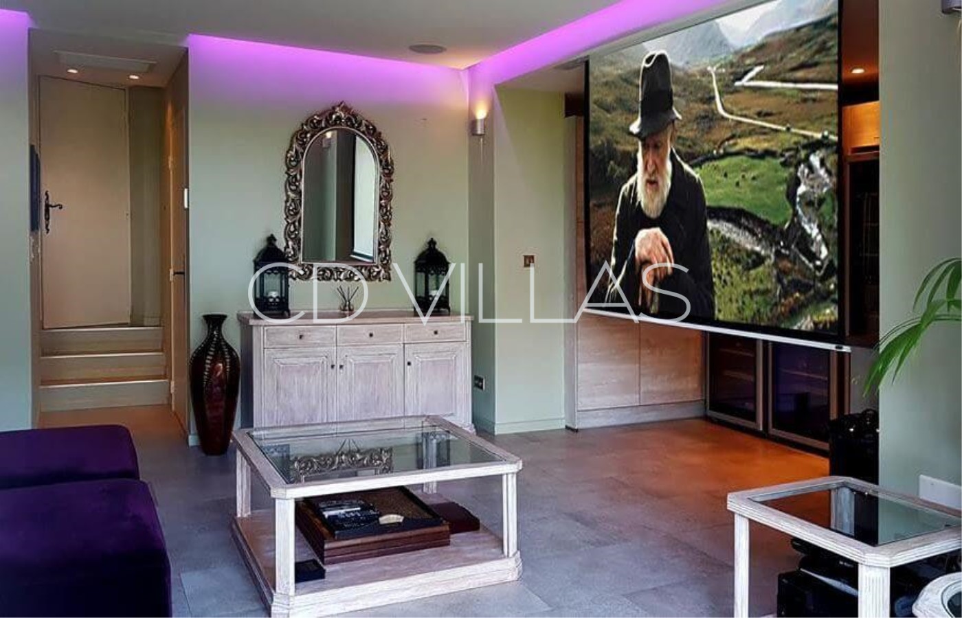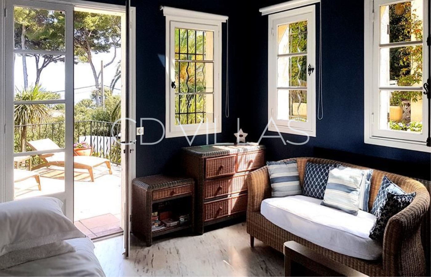 TV Den - with sleep sofa, sky projector and opening onto sun terrace with views towards the sea.