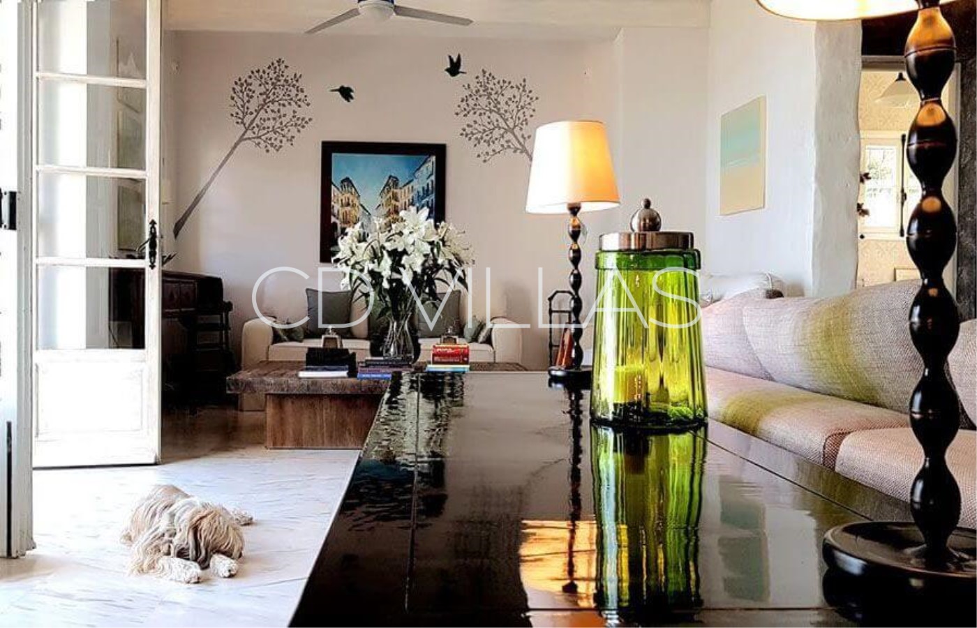 Living Room - Open fireplace, A/C with direct access to outside terrace with dining table 10.