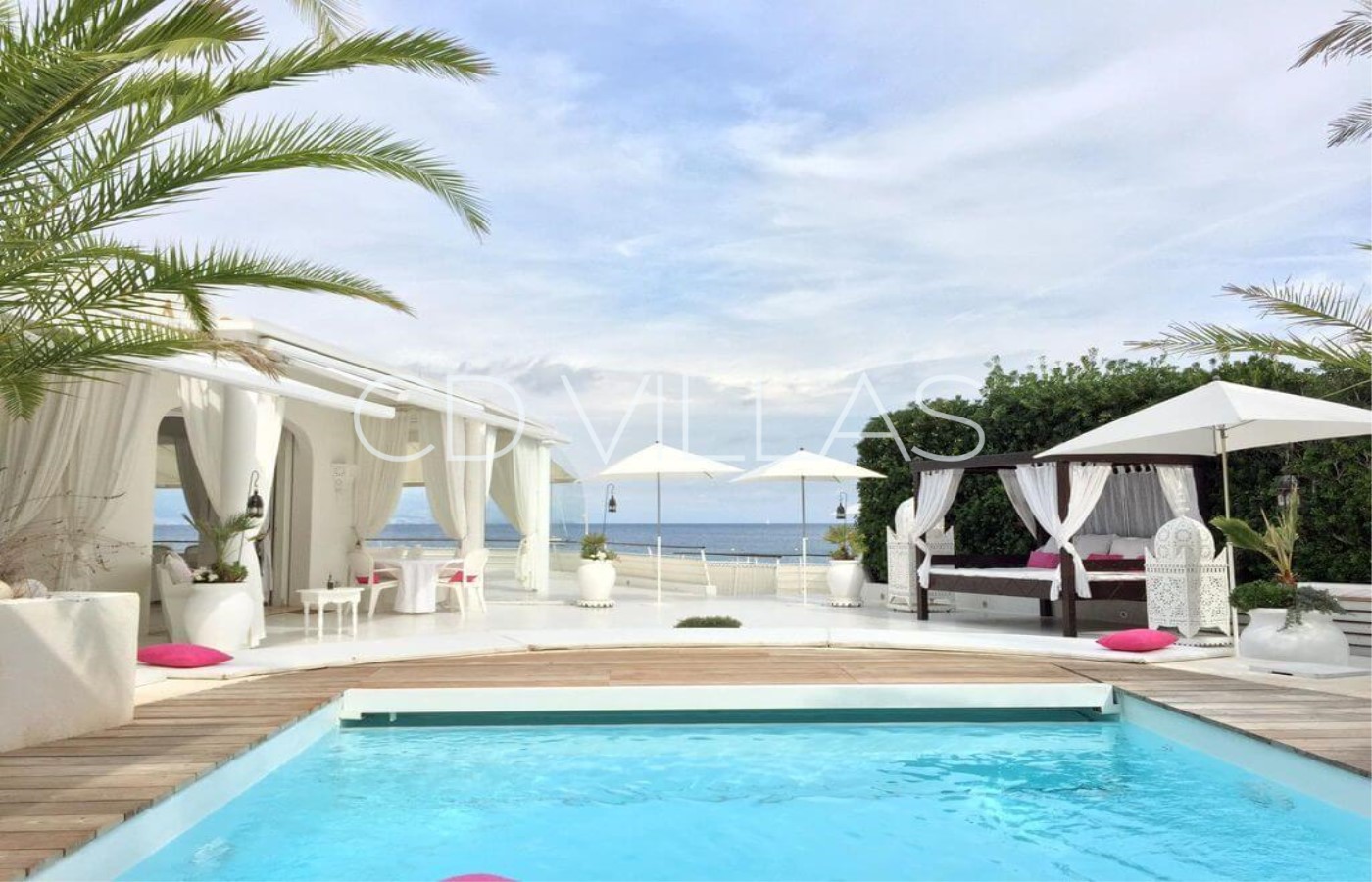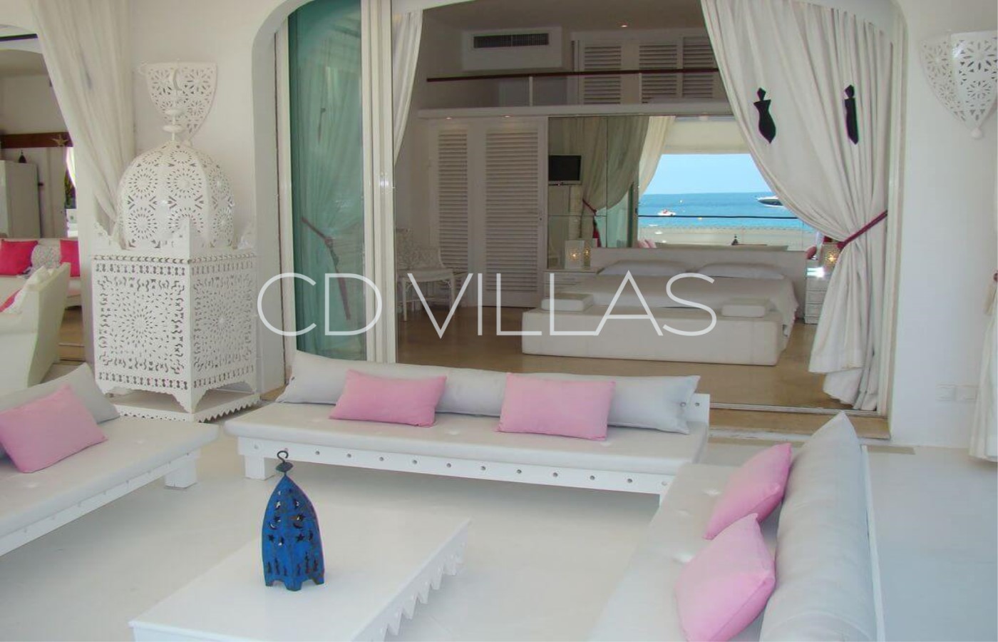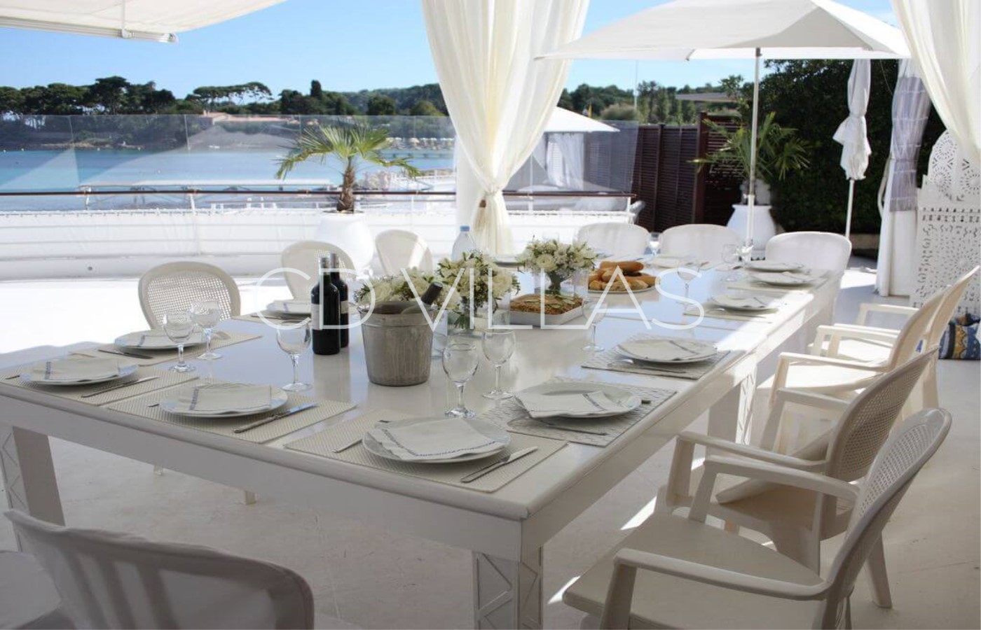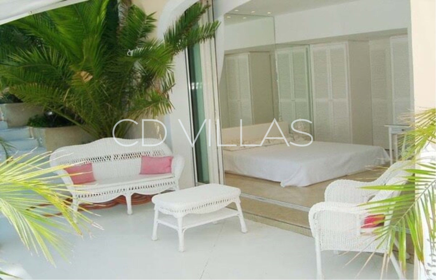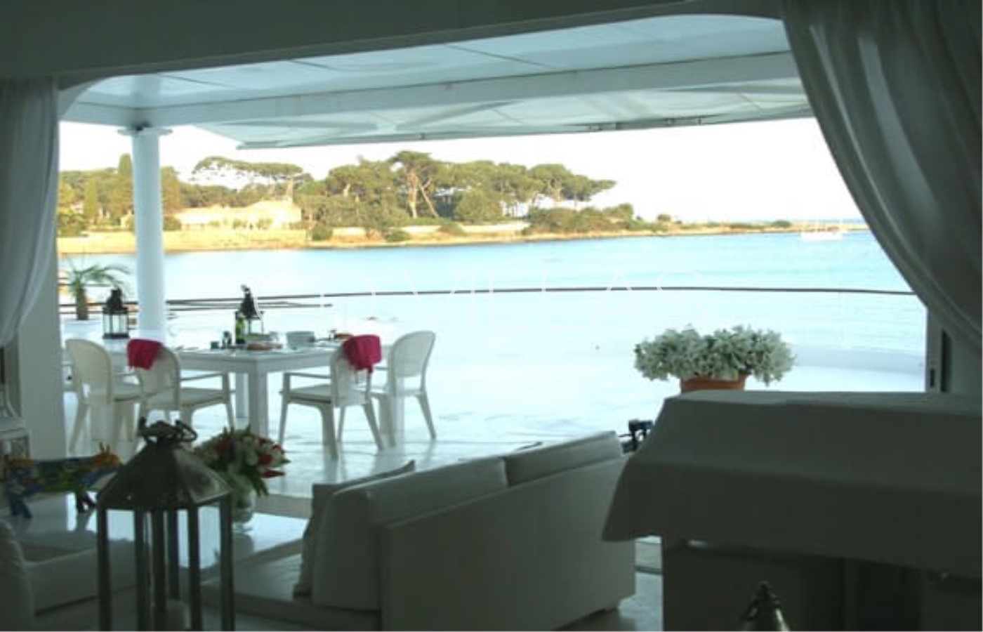 The villa has been fully renovated to high standards with modern furnishing and decorated in a neutral minimalist style. All on one level, La Voile Blanche is composed of an open plan living and dining area with floor to ceiling sliding door and terrace over the sea, a modern fully equiped kitchen, 3 bedrooms with 2 bathrooms and an independant en suite bedroom. All rooms are air conditionned, and open onto large terraces over the sea and direct access to the beach.