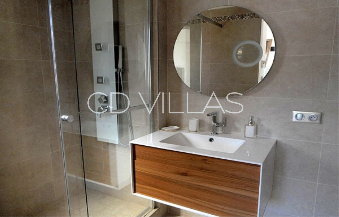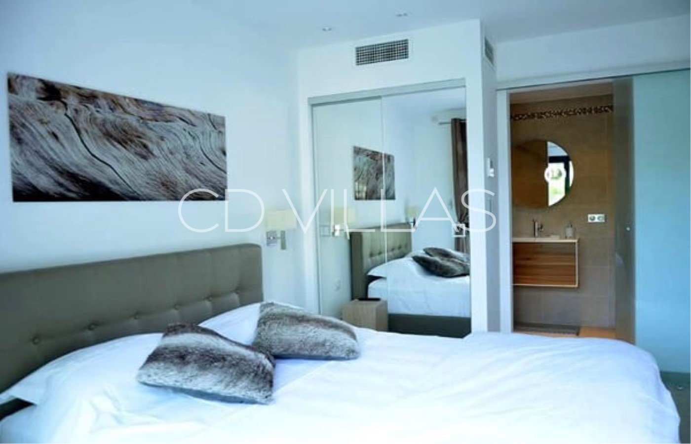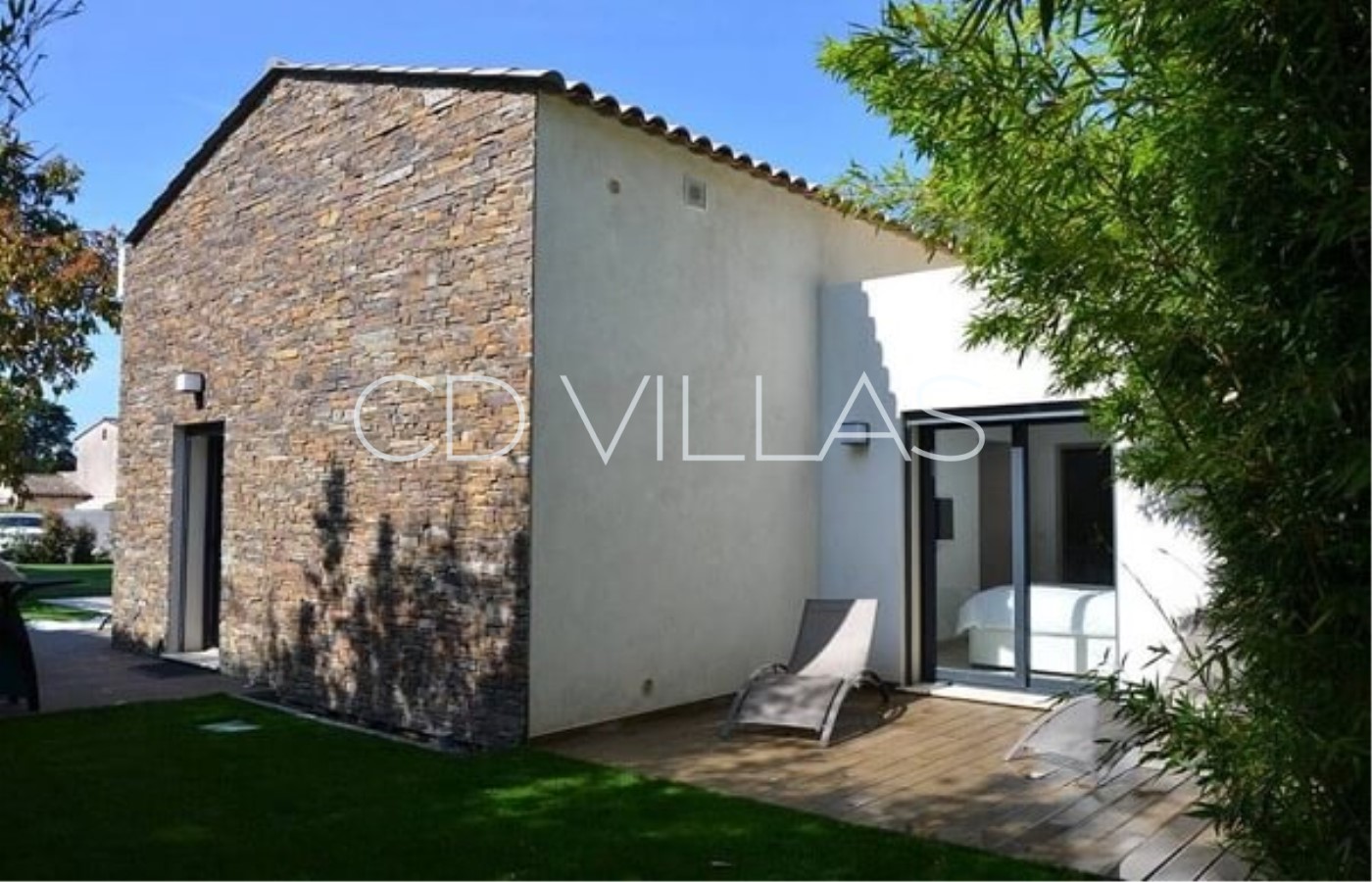 From the front gate it's just a couple of minutes walk to the Plage des Ondes and to the restaurants of the Cap. The villas have been tastefully renovated to a very high standard to provide two bedrooms in each, all air-conditioned with en-suite bathroom, a kitchen and living room.