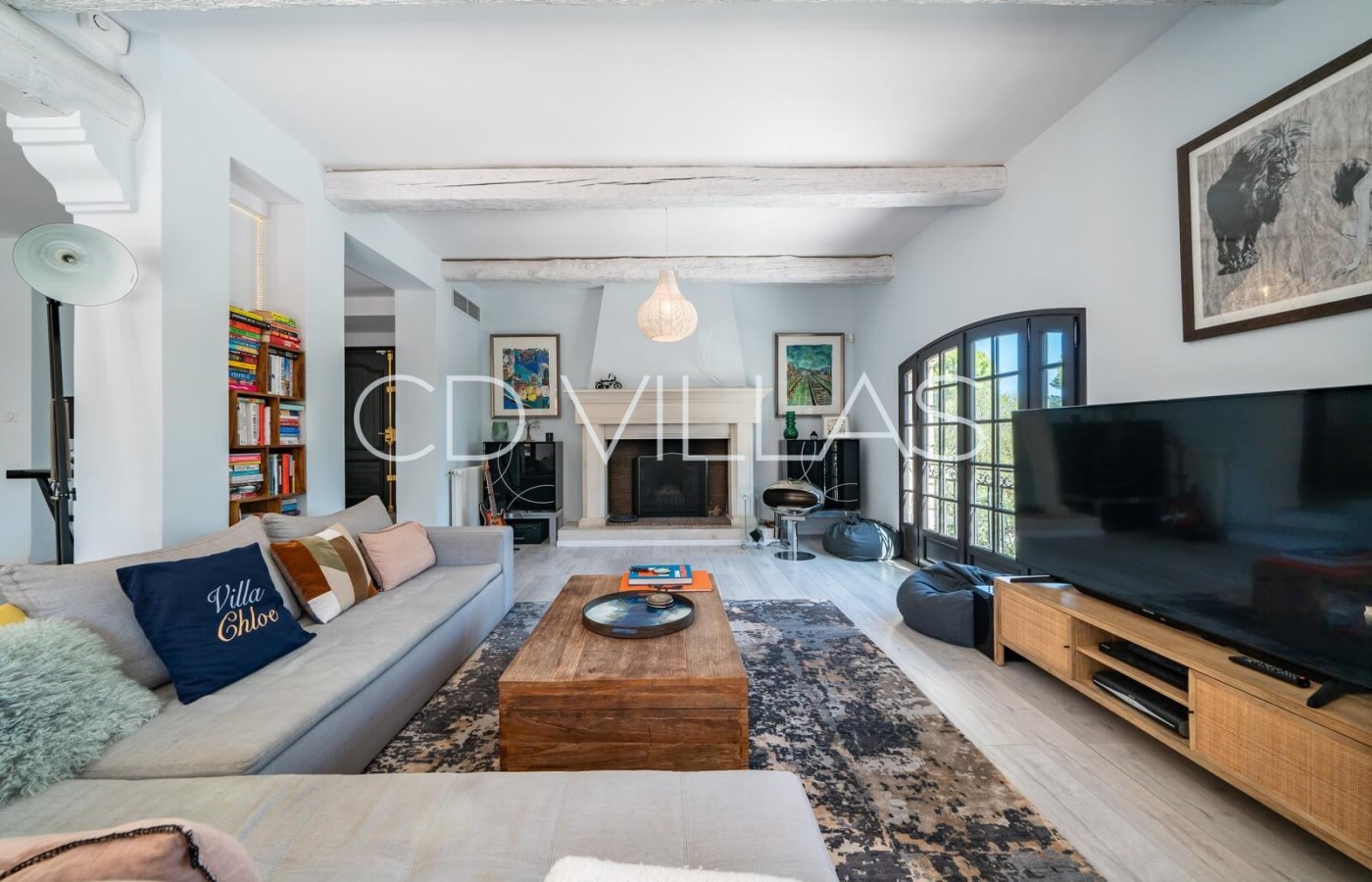 Livingroom - With comfortable sofas, TV, views over pool and out to sea.