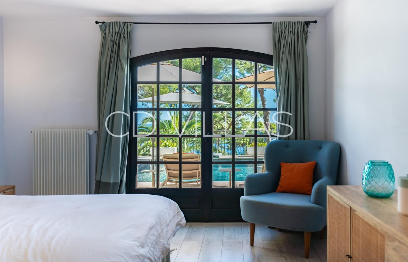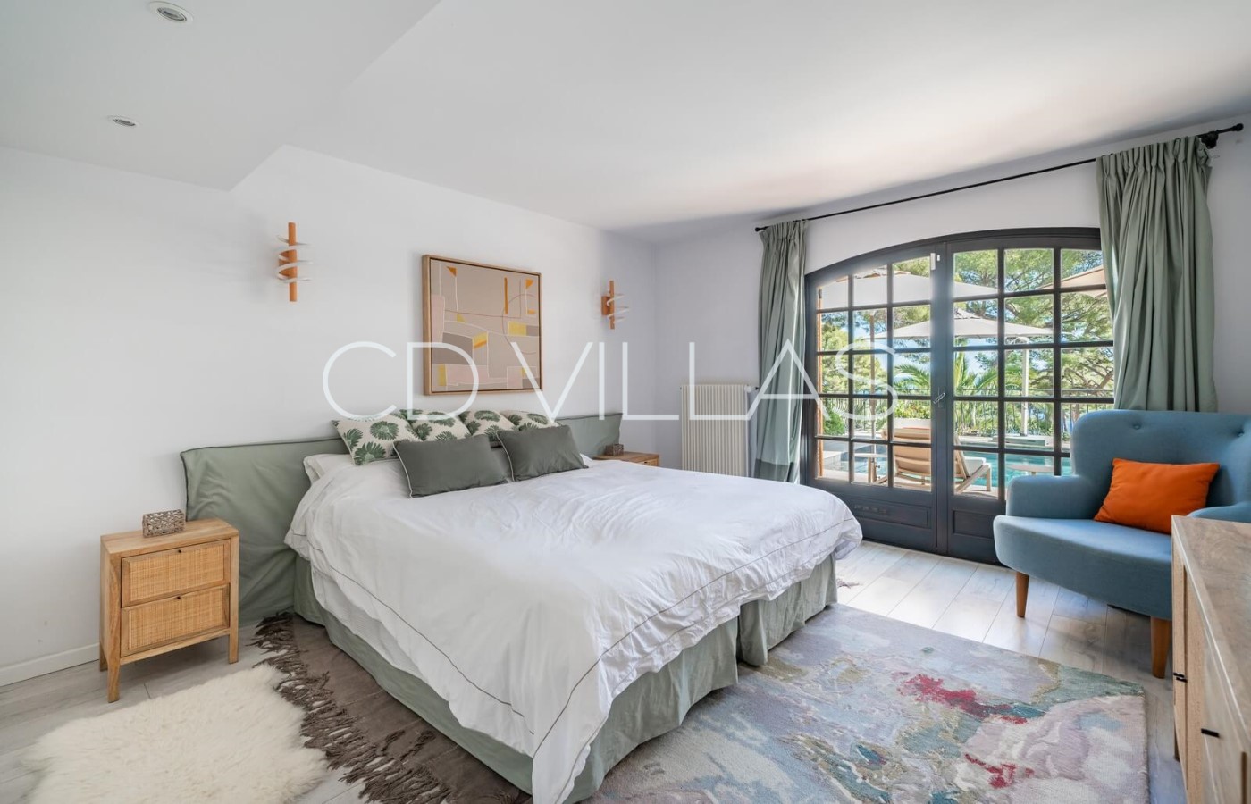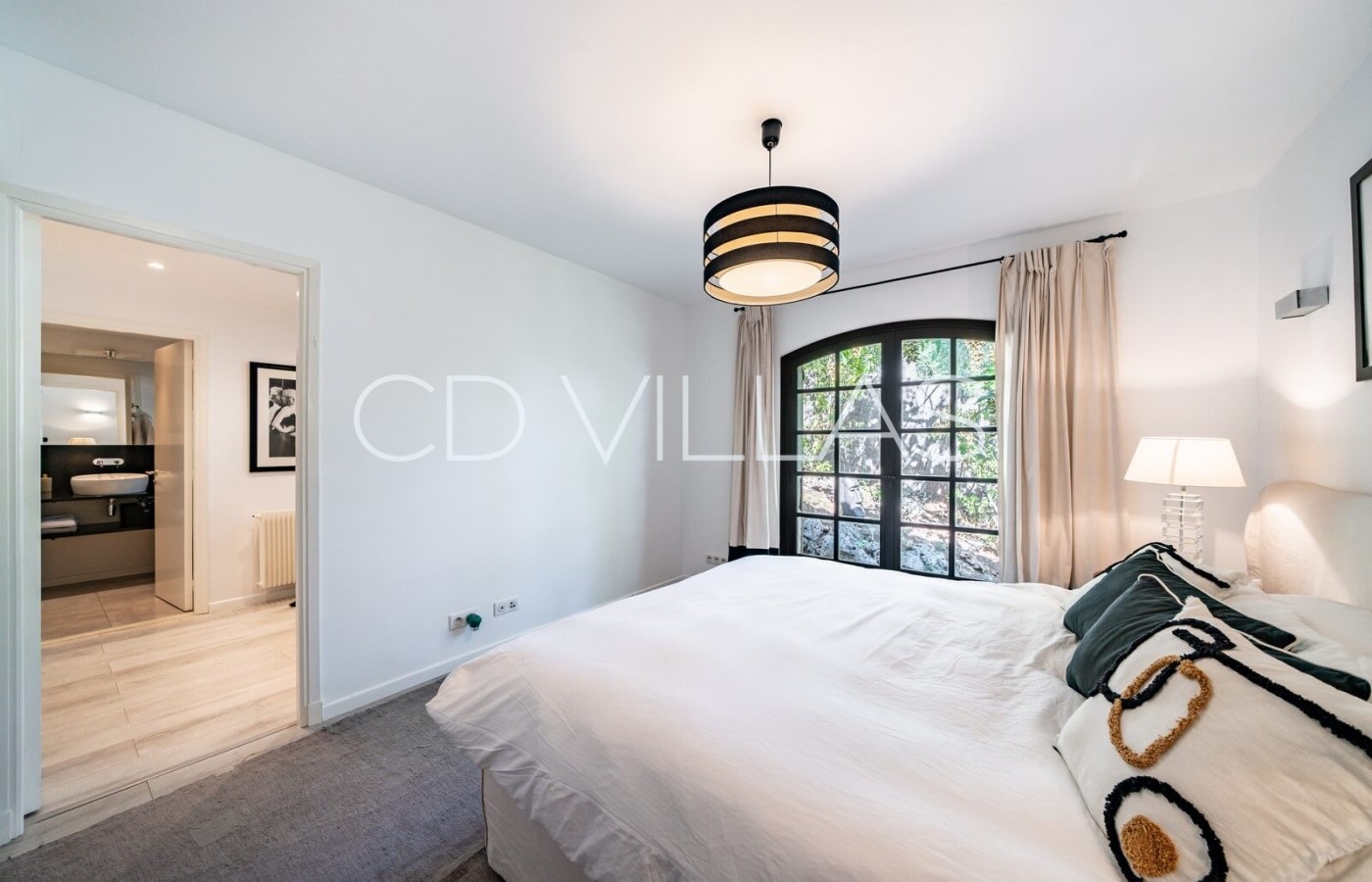 Bedroom 5 - With queen-sized bed and en suite bathroom, access to pool terrace.