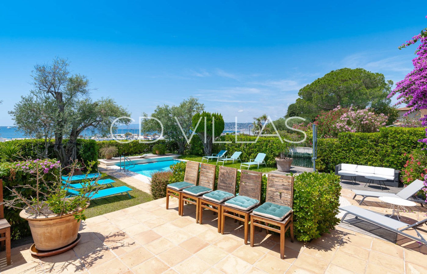 A charming property in one of best locations on the Cap d'Antibes, overlooking the Mediterranean and the marina.