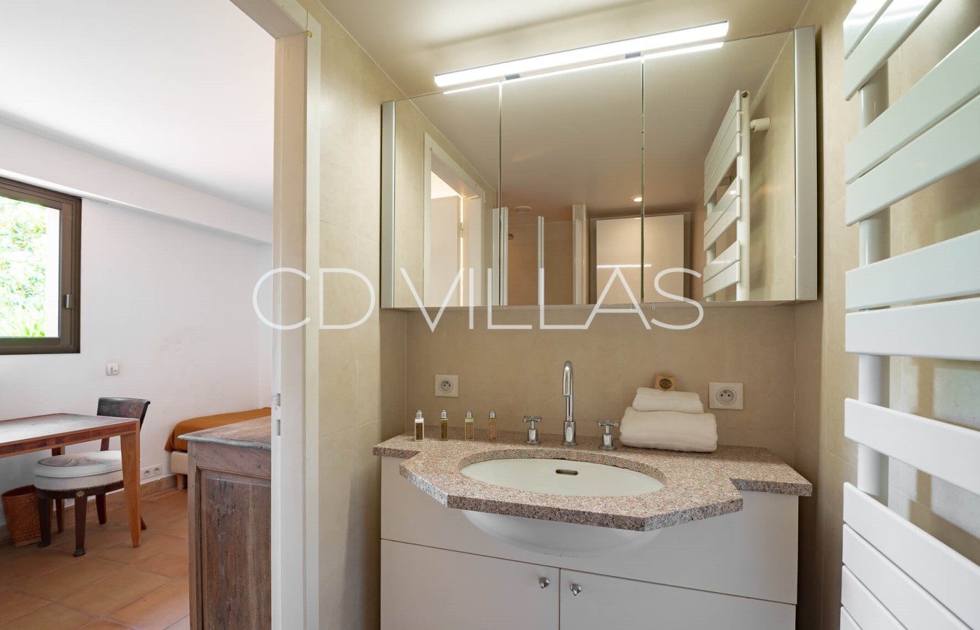 Bedroom 2 - With queen sized bed, AC and sea views, sharing bathroom with bedroom 3.