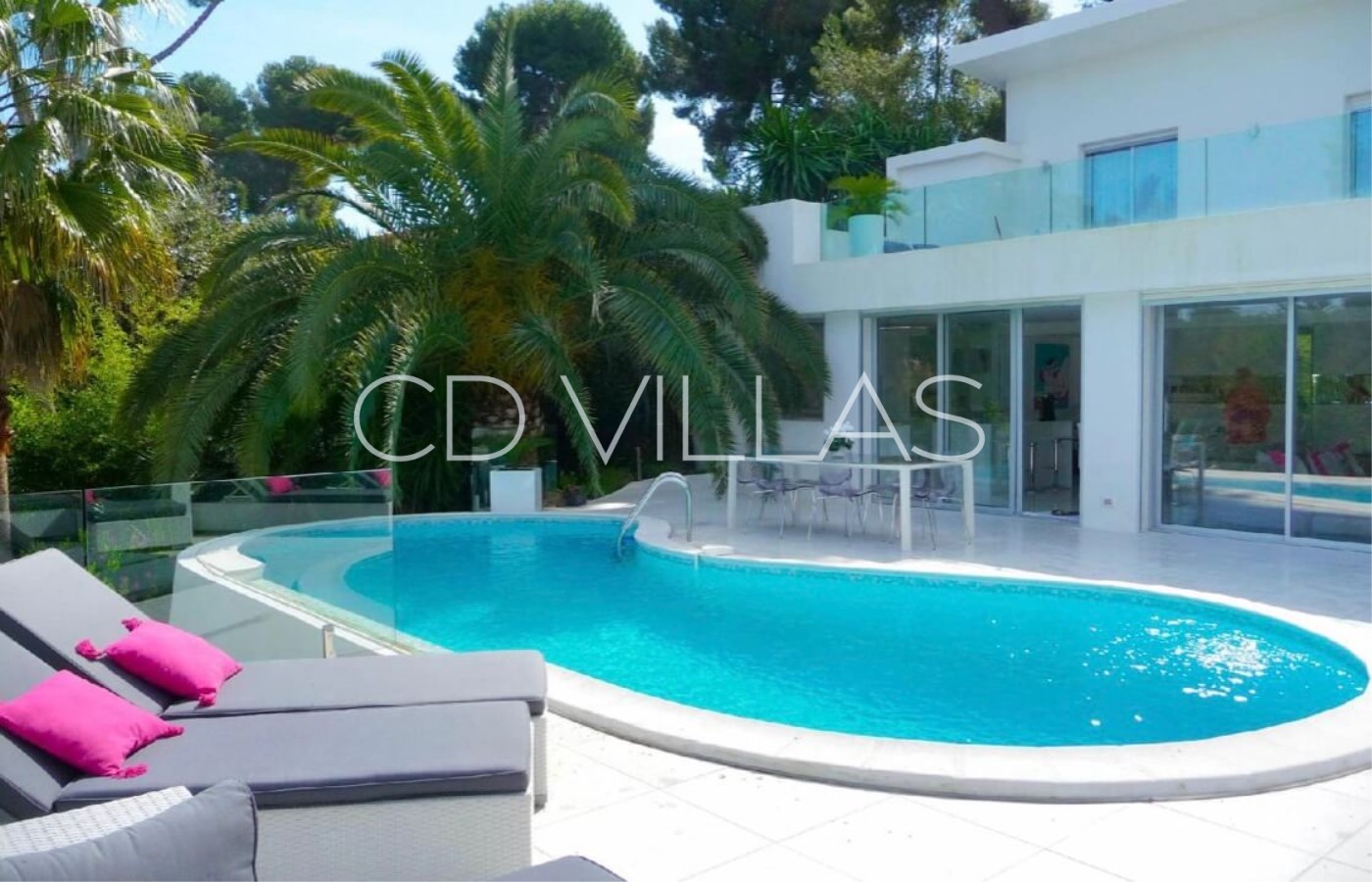 Villa Georgia is a pretty contemporary villa situated in a quiet and residential area on the prestigious Cap d'Antibes, within walking distance to the coast and beaches. The villa can welcome up to 6 people with its 3 ensuite bedrooms, an independent bedroom is available upon request, ideal for on-site staff or teenagers. The ground floor living / dining room opens onto a large terrace leading to the swimming pool. This lovely house has been tastefully decorated in a modern style and comes with air-conditioning.