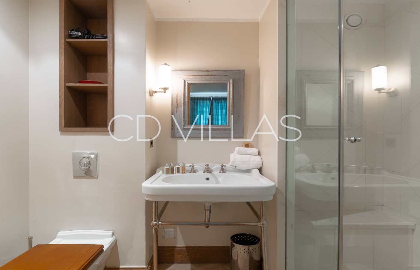 The property has four double bedrooms with en-suite bathroom. Two of the bedrooms are located on the first floor, there is an addional terrace with stunning sea views. The third bedroom with en suite bathroom is located on the second floor. From the ground floor steps lead down to a second living room lounge with sofa bed and office corner, opening onto pool terraces. A fourth bedroom with its en suite bathroom is located on the same floor.