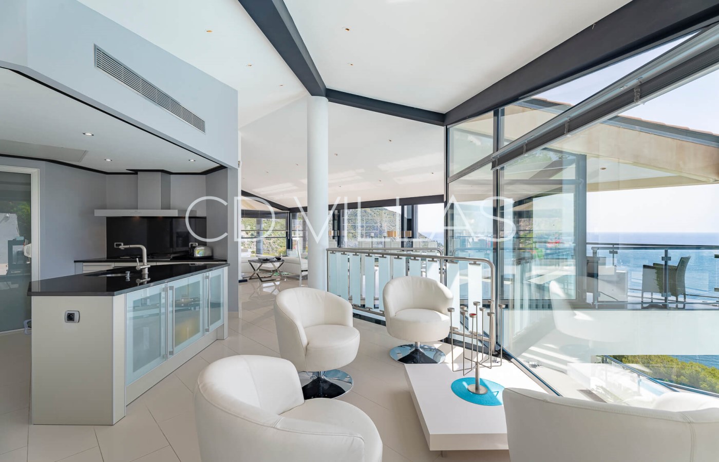 Kitchen - Beautifully light and super fully-equipped kitchen fitted with Miele appliances. Access directly out onto the large breakfast terrace. Panoramic views of the mediterranean sea.