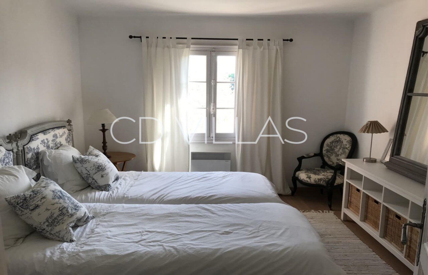 Bedroom 1 - with 2 single beds, wardrobe and pool view