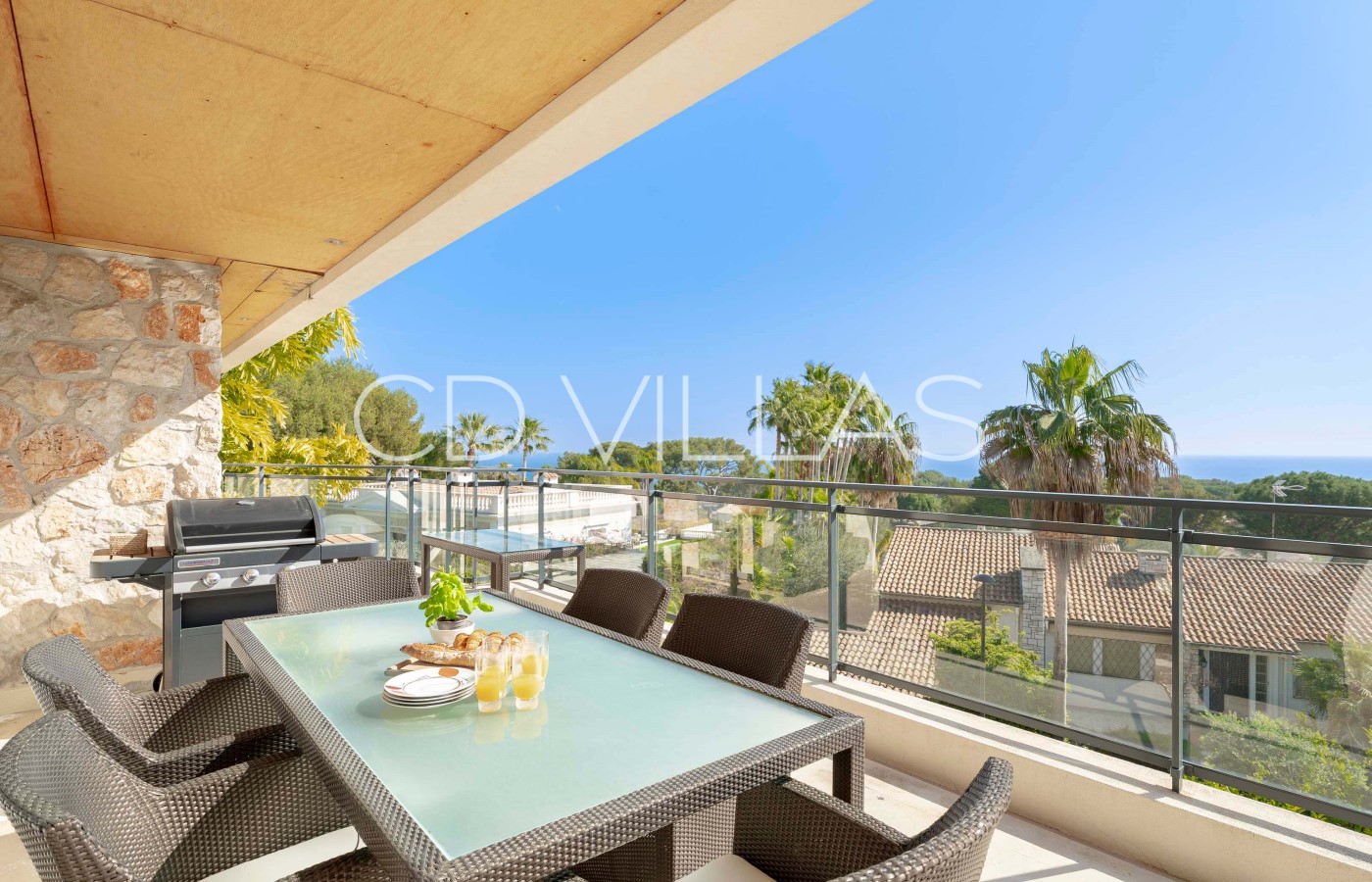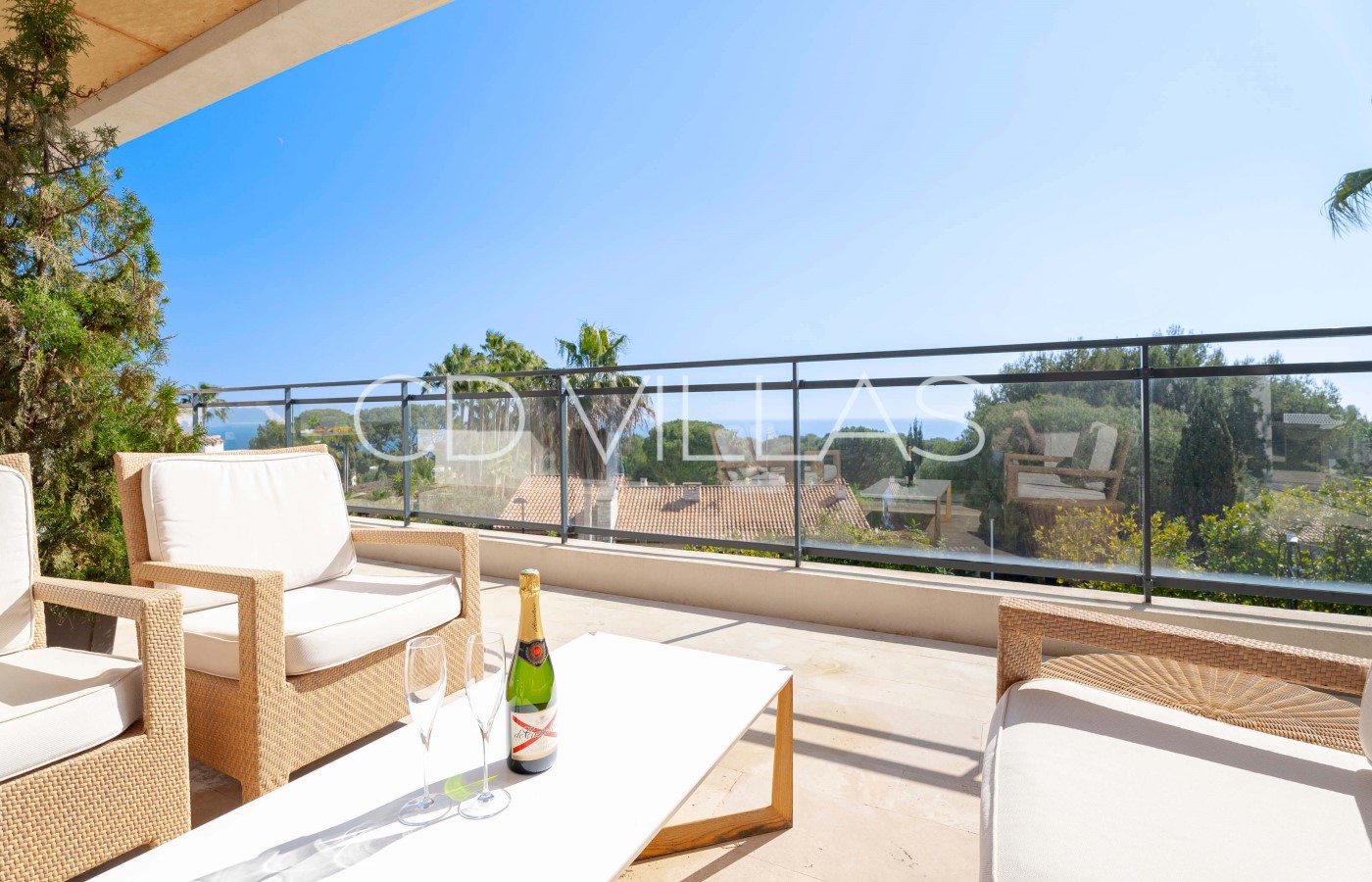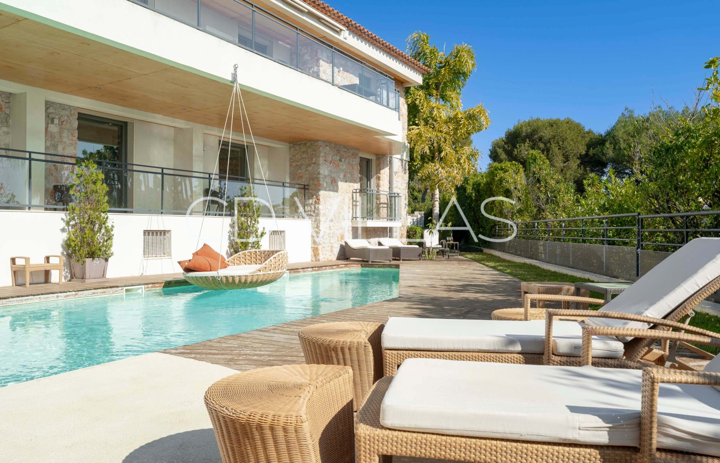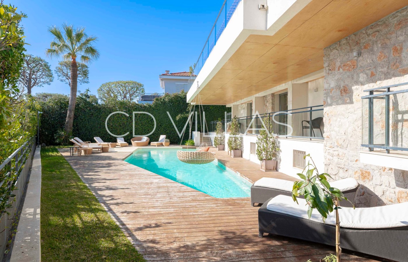 Villa Bellevue is set in 1,500 m² of private gardens planted with umbrella pines and is fully fenced offering total privacy.