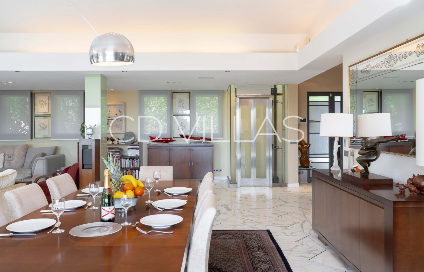 The property measures 500m² of living space which is fully air conditioned and spread over 3 floors which are connected by both a staircase as well as a lift.