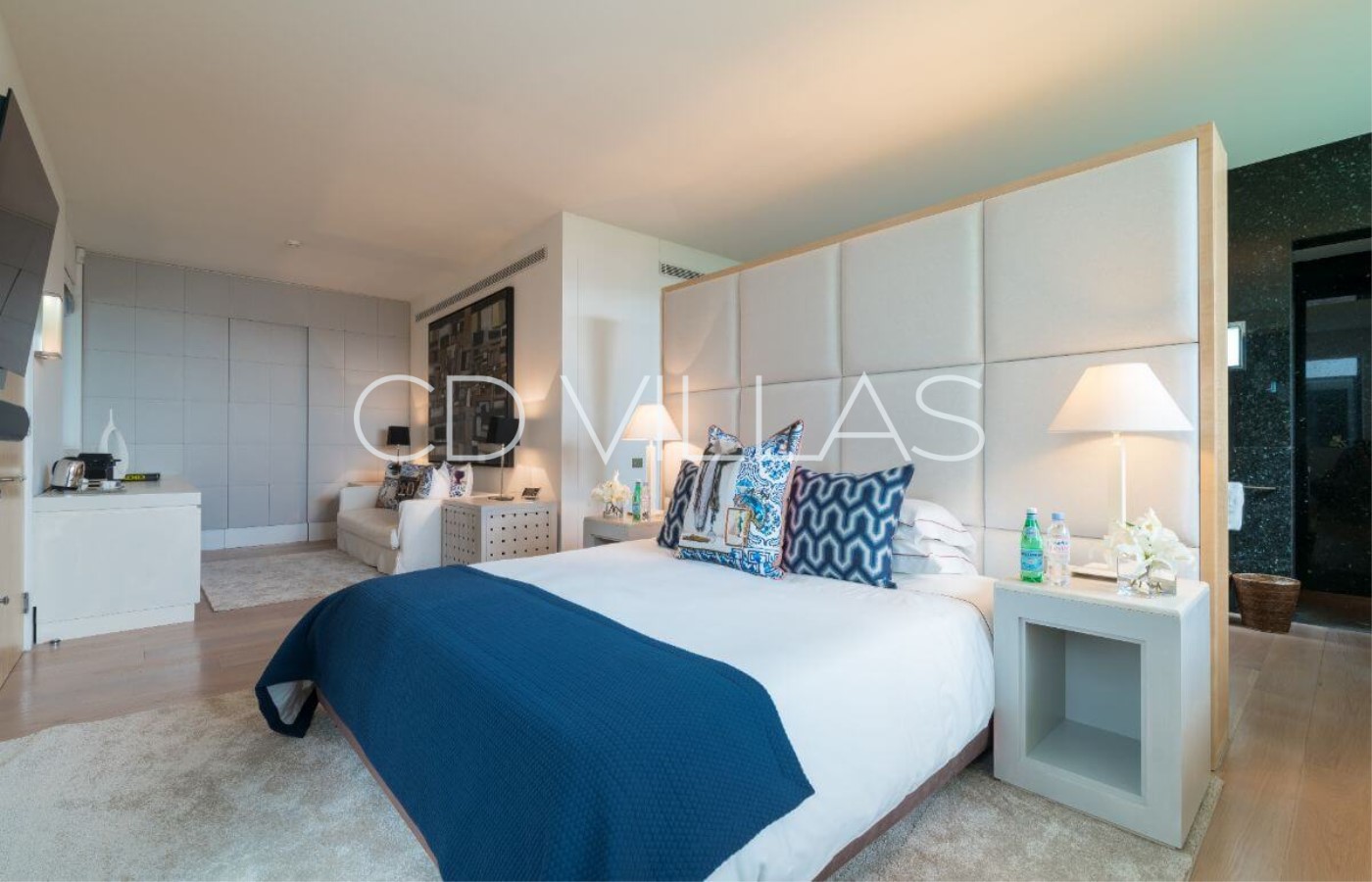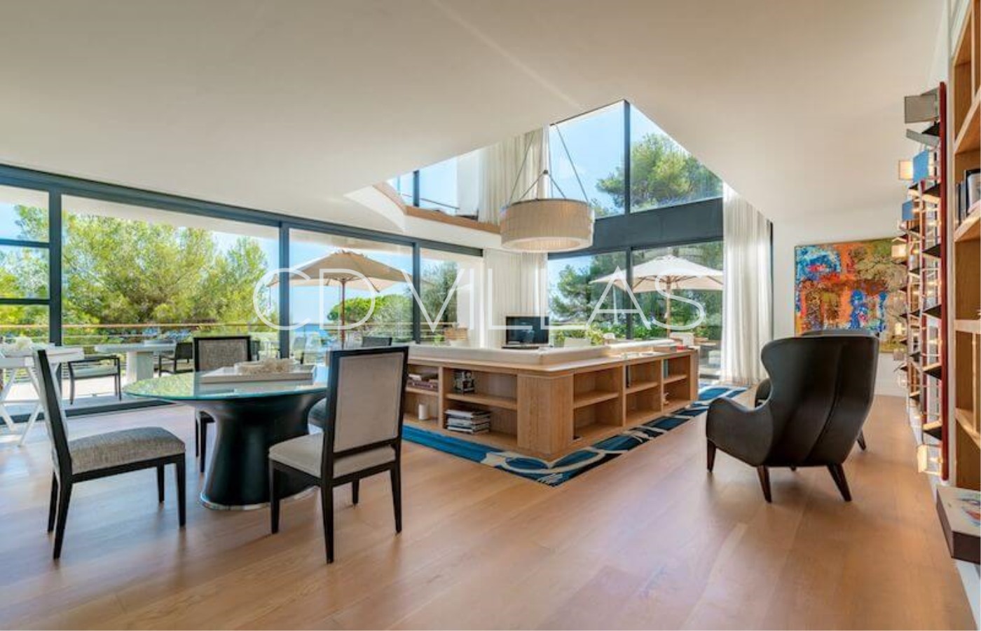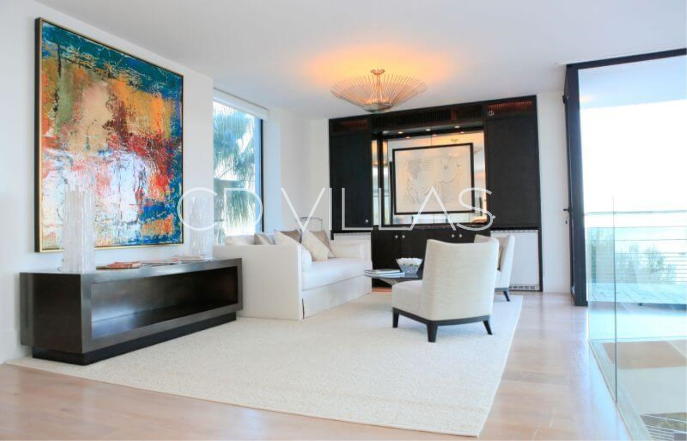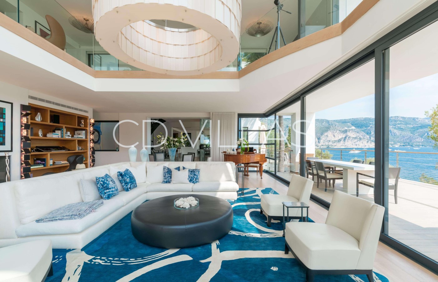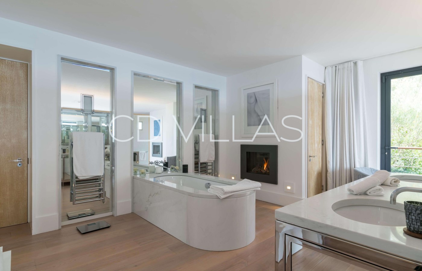 The villa comprising 1,250 sq m of living space has the most wonderful series of sea-facing terraces and balconies. There are a total of 4 ensuite bedrooms on the upper levels and a 5th bedroom on the lower level ideal for teenagers or staff, a private pool, jacuzzi, and a spa area with sauna and hammam.