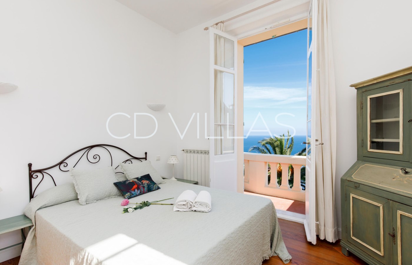 Master bedroom - Double bed with stunning sea views - leading onto large terrace. En suite bathroom with bath tub, shower and wc.