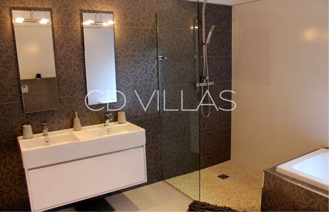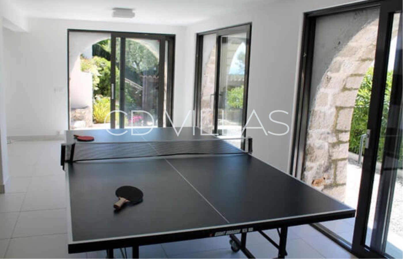 On the first floor there is a master ensuite with windows opening onto the pool & the spectacular sea view. The second bedroom can be either a double or twin, and the third double bedroom has its own en suite shower room and a balcony overlooking the bay & the red rooftops of Villefranche.