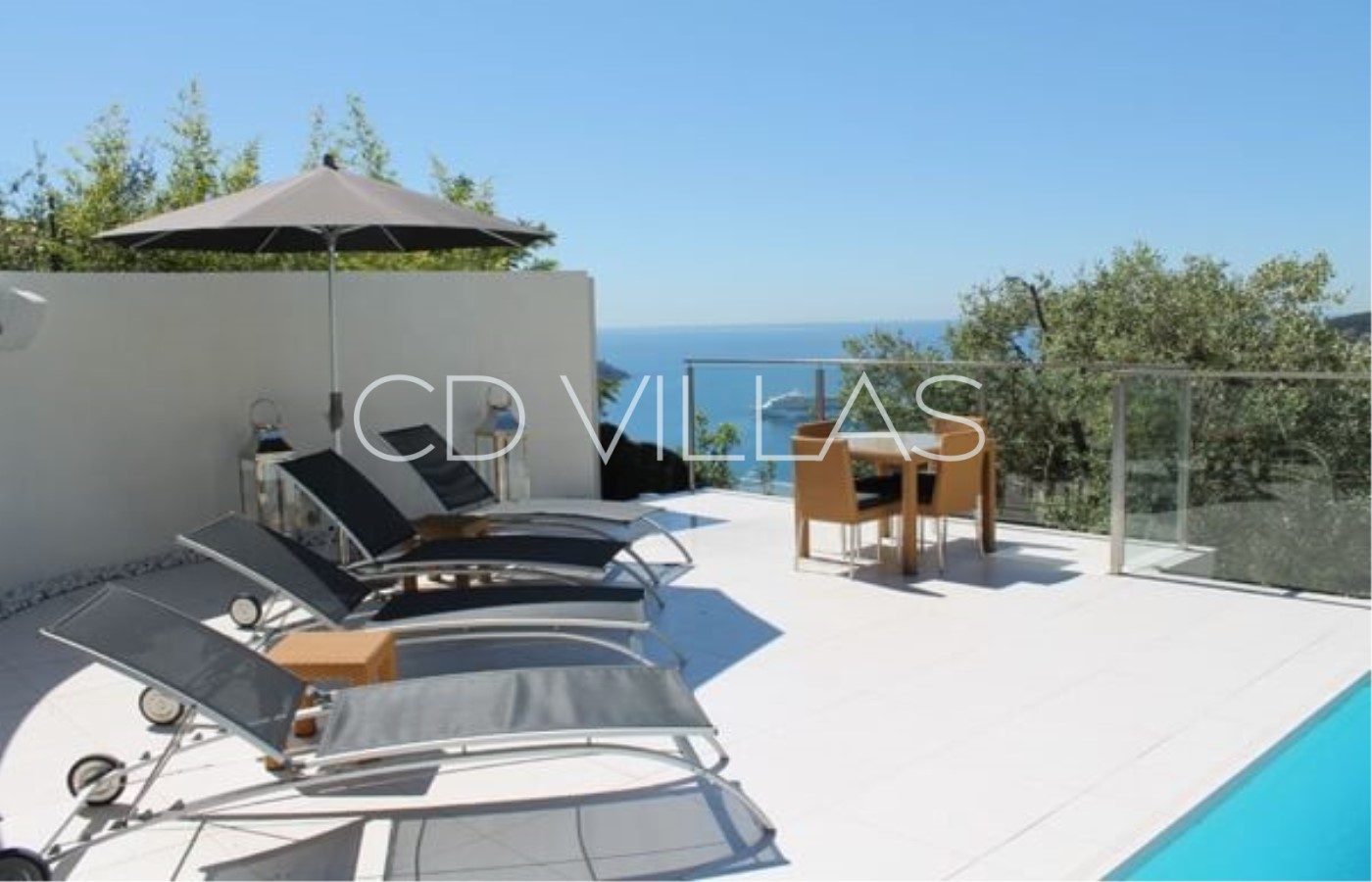 Spectacular views over Cap Ferrat and the Mediterranean can be seen from most of the rooms and the pool terrace. Recently renovated in a contemporary style the villa offers luxurious accommodation for up to 8 people.